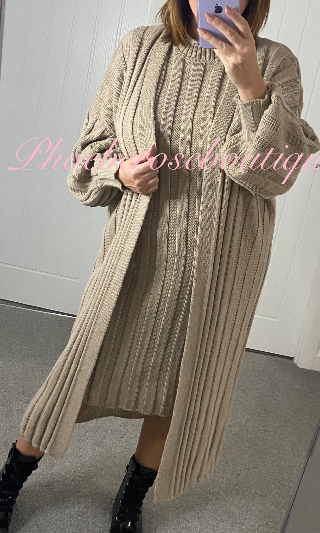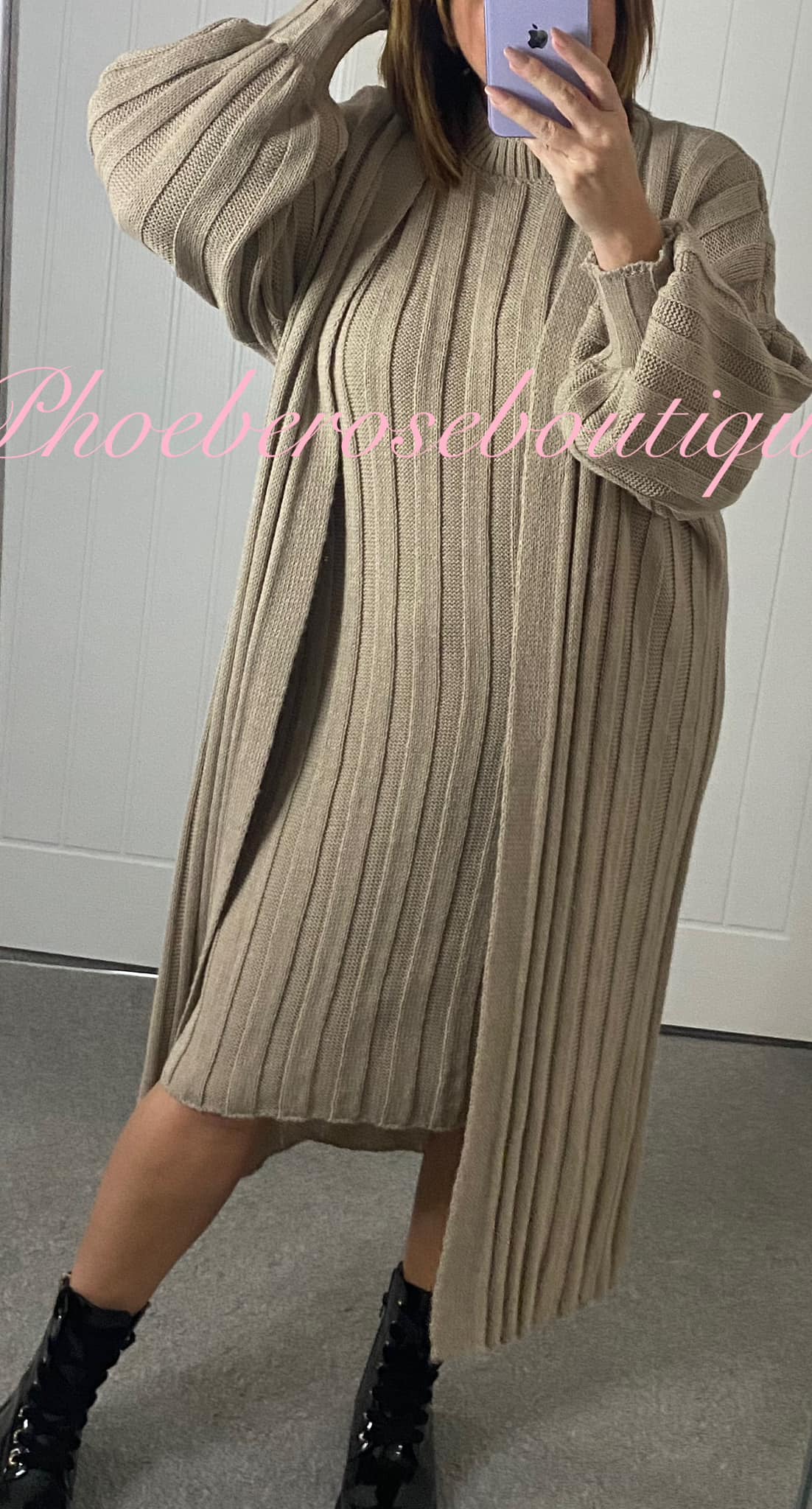 Be the first to review “2 piece Dress Set Soft Stretch Ribbed Knit – Soft Mocha”
