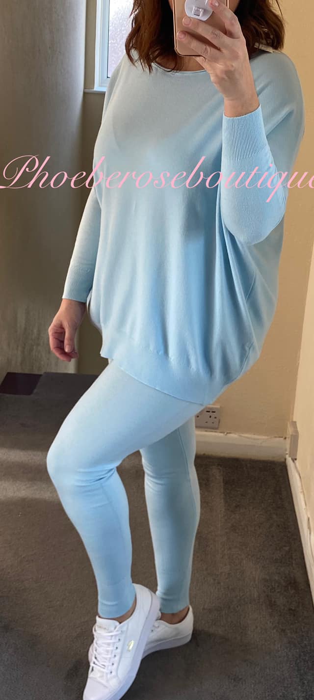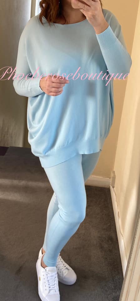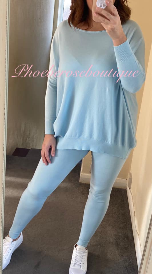 Be the first to review “2 Piece Soft Stretch Knit Suit – Soft Blue”