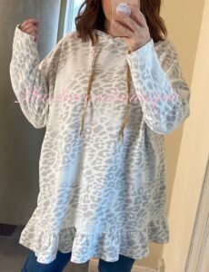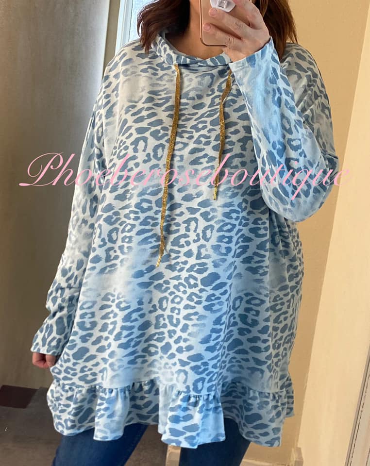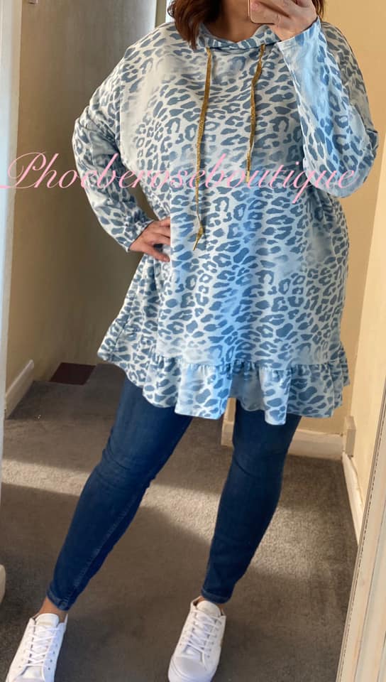 Be the first to review “Animal Print Longline Frill Hem Hooded Top – Soft Blue”