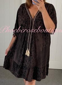 *Tassel trim on sleeves and sparkly gold lurex crochet trim and tassle on neckline