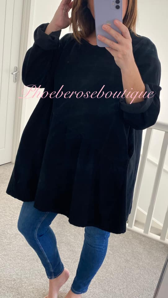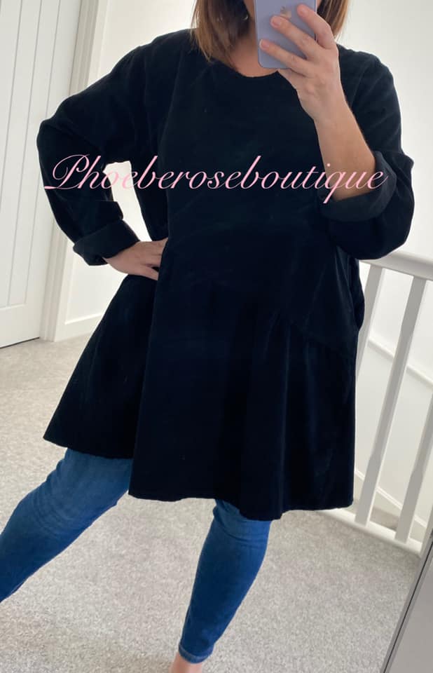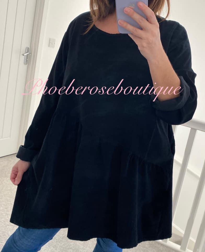 Baby Cord Oversized Swing Pocket Tunic/Top – Black
