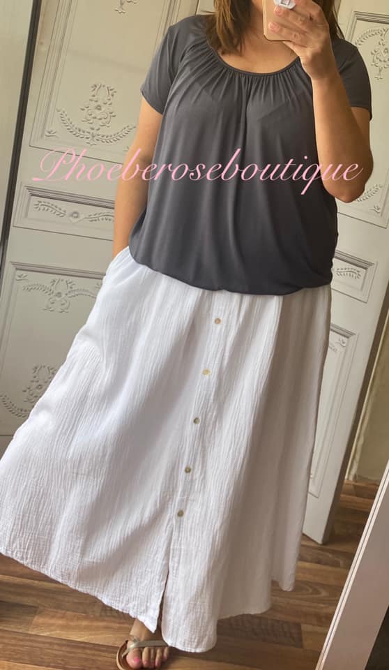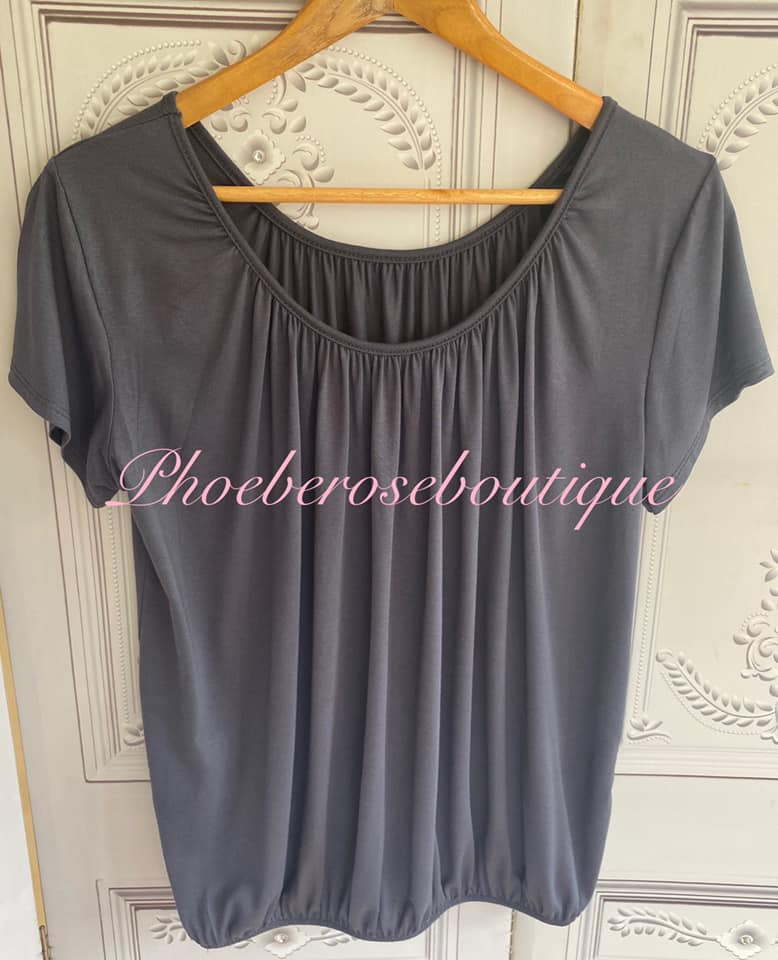 Be the first to review “Basic Slouch Cap Sleeve Bubble Hem Top – Charcoal Grey”