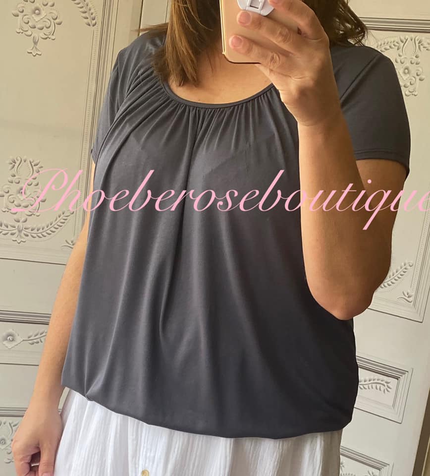 Basic Slouch Cap Sleeve Bubble Hem Top – Charcoal Grey