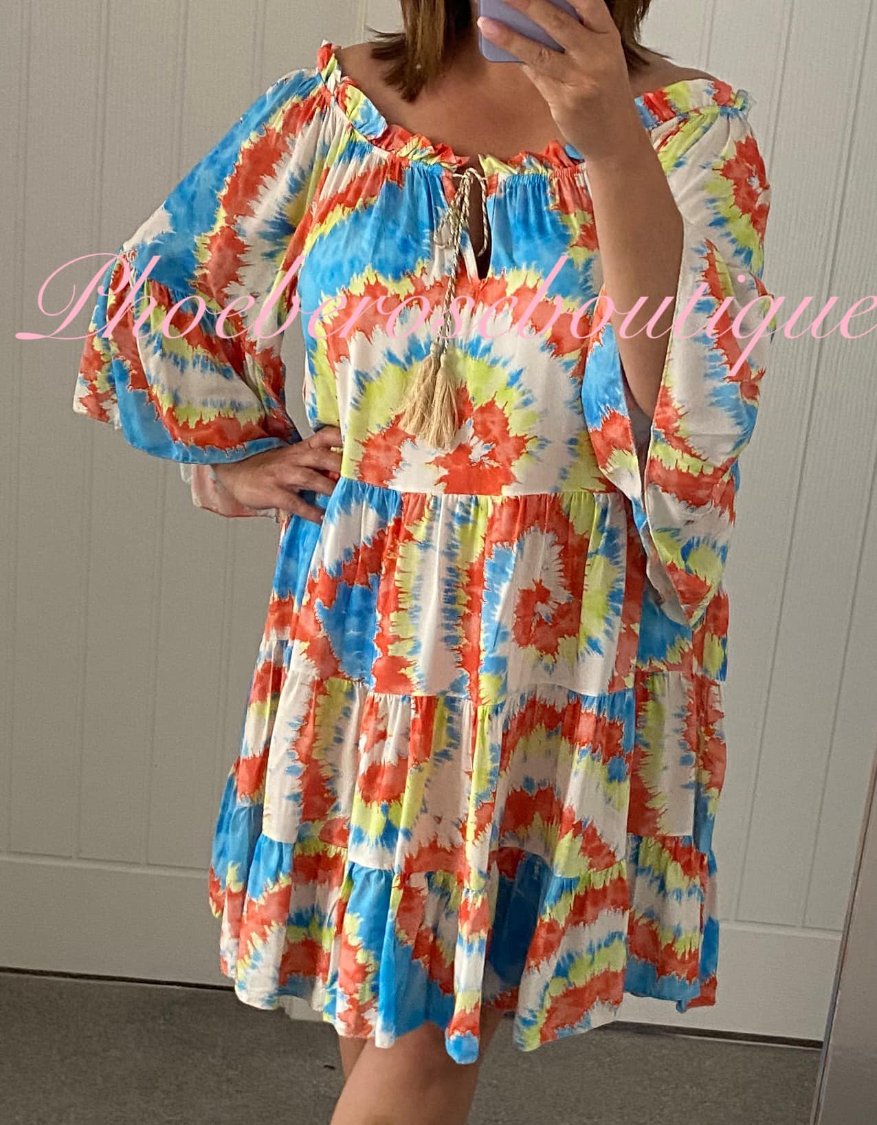 Brights Tie Dye Tiered Dress/Tunic – Off White Mix