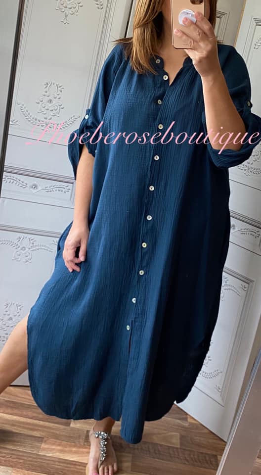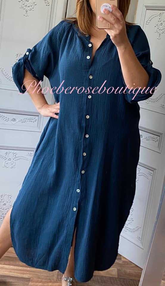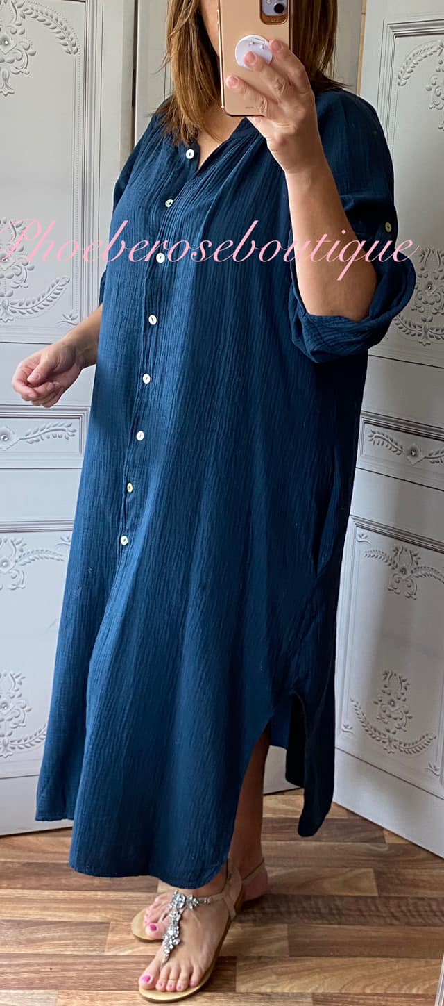 Be the first to review “Cheesecloth Pocket Shirt Dress – Navy”