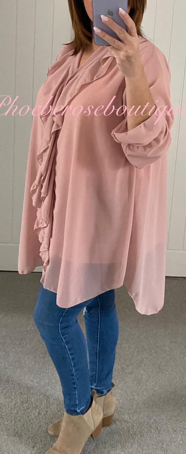 Chiffon Ruffle Front Oversized Shirt/Tunic – Soft Dusky Pink