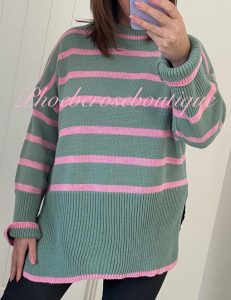 Be the first to review “Contrast Stripe Hight Neck Jumper – Hot Pink”