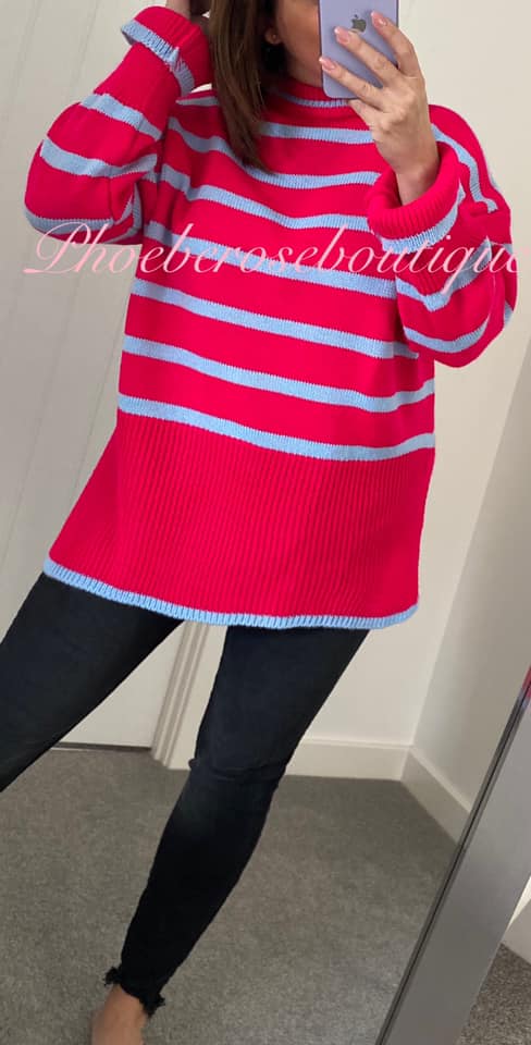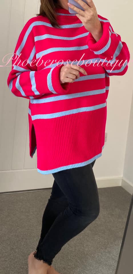 Contrast Stripe Hight Neck Jumper – Hot Pink