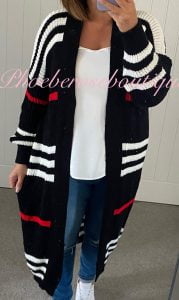 Be the first to review “Contrast Stripe Longline Chunky Knit Cardigan – Camel”