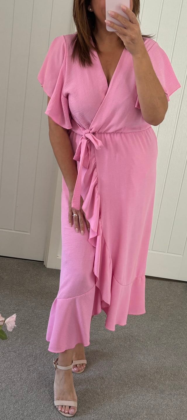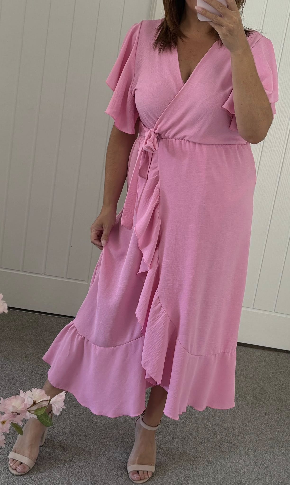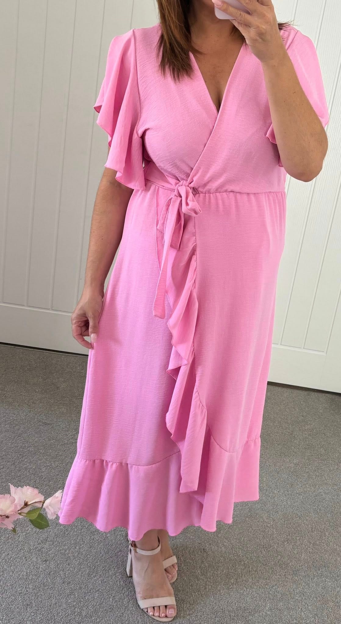 Crepe Frill Wrap Midi Dress – Bubblegum Pink