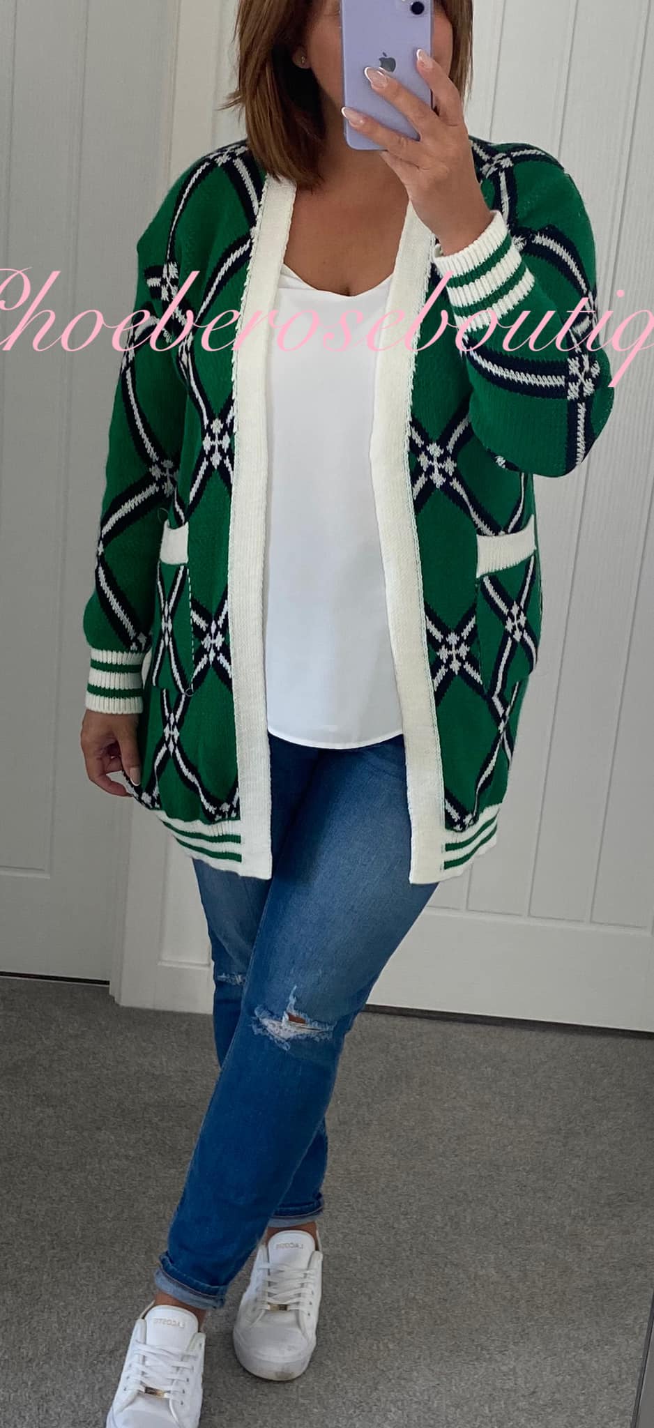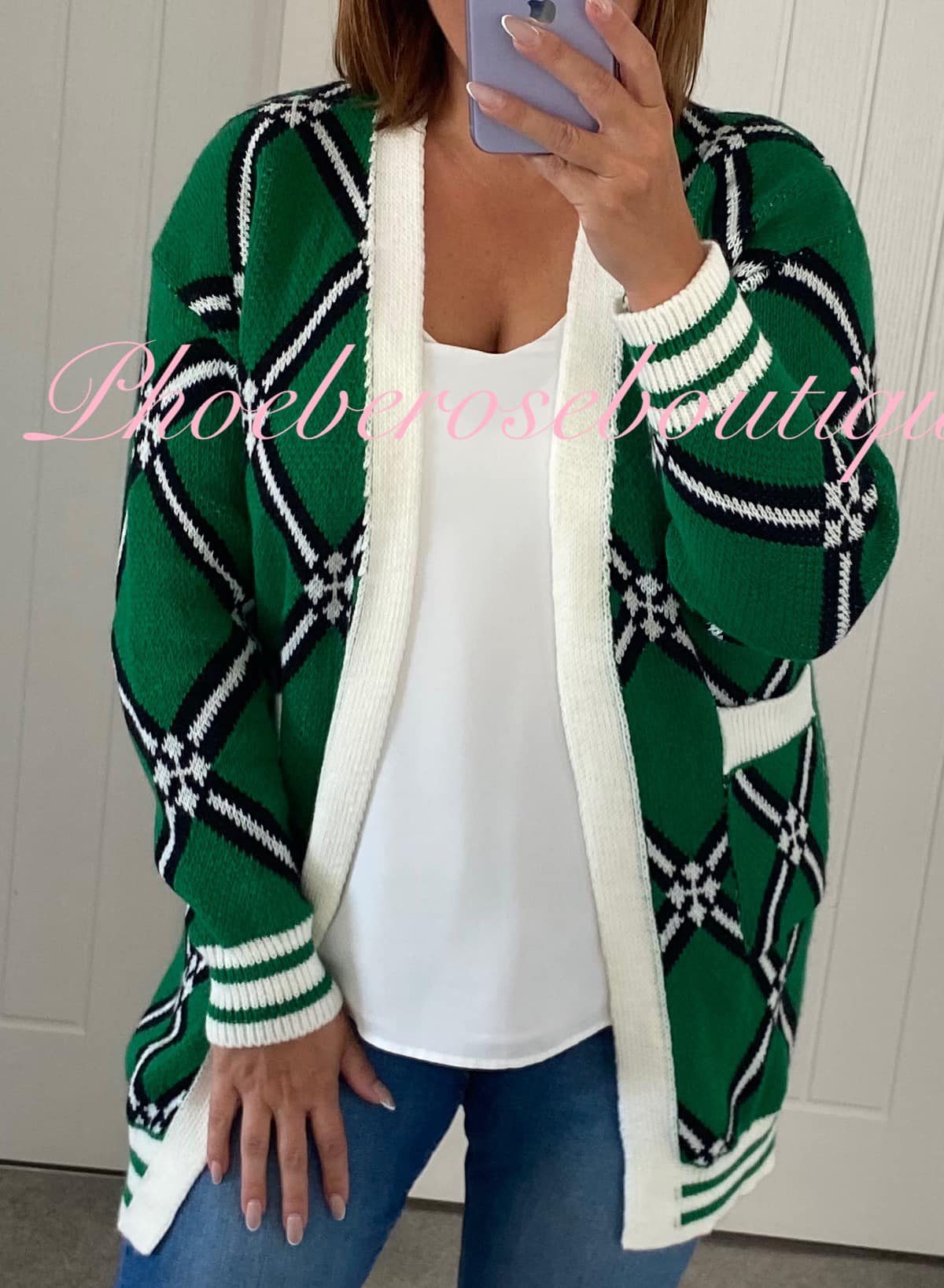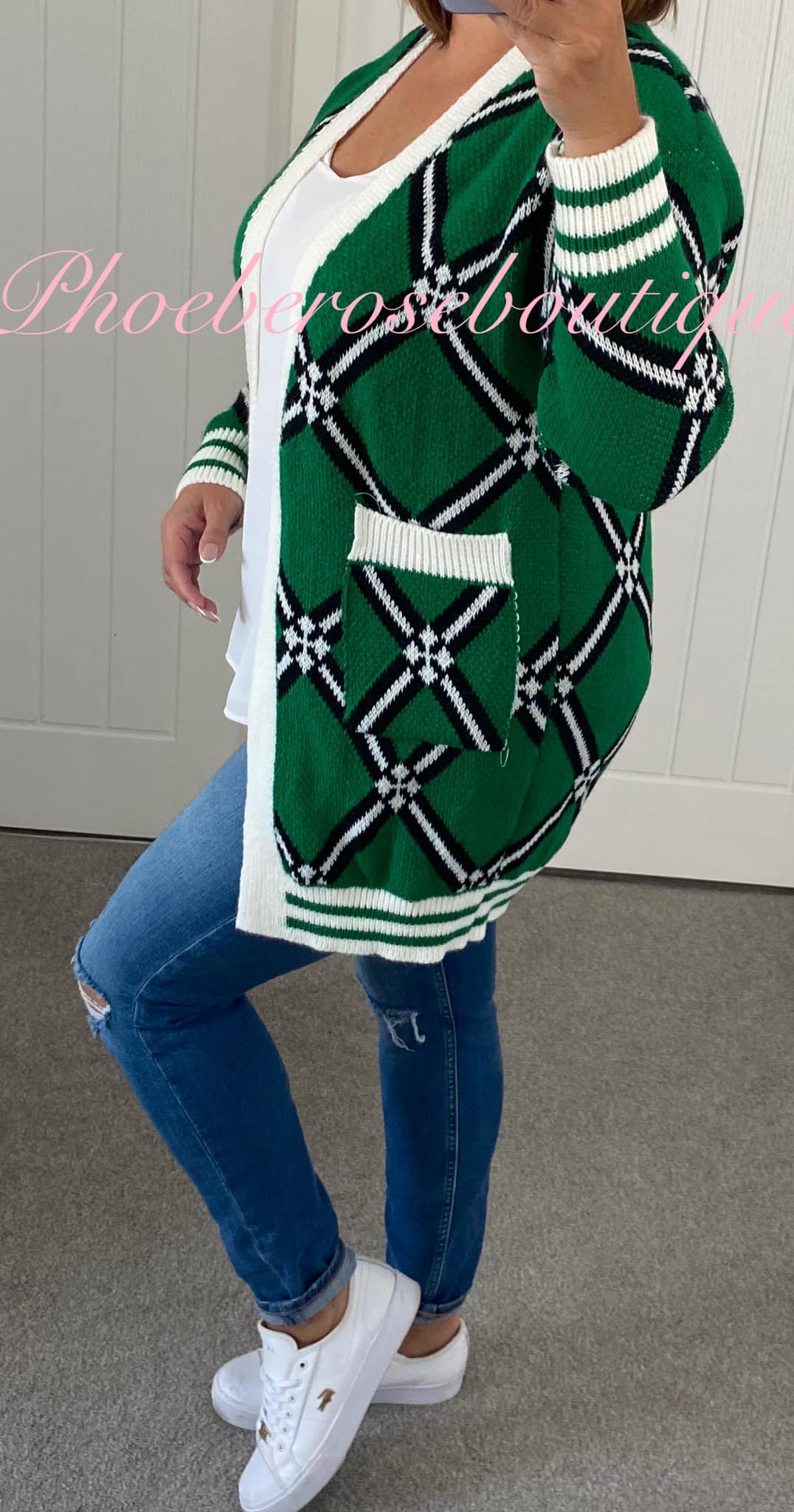 Diamond Print Stripe Cuff Pocket Cardigan – Green Mix