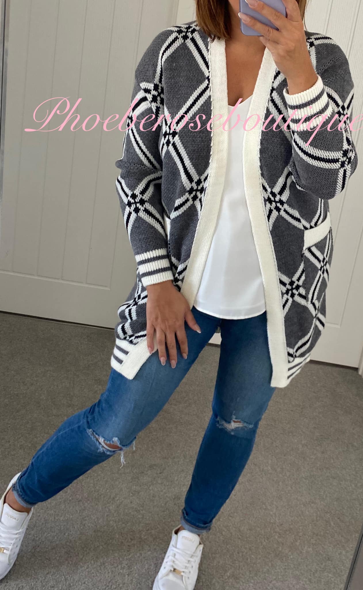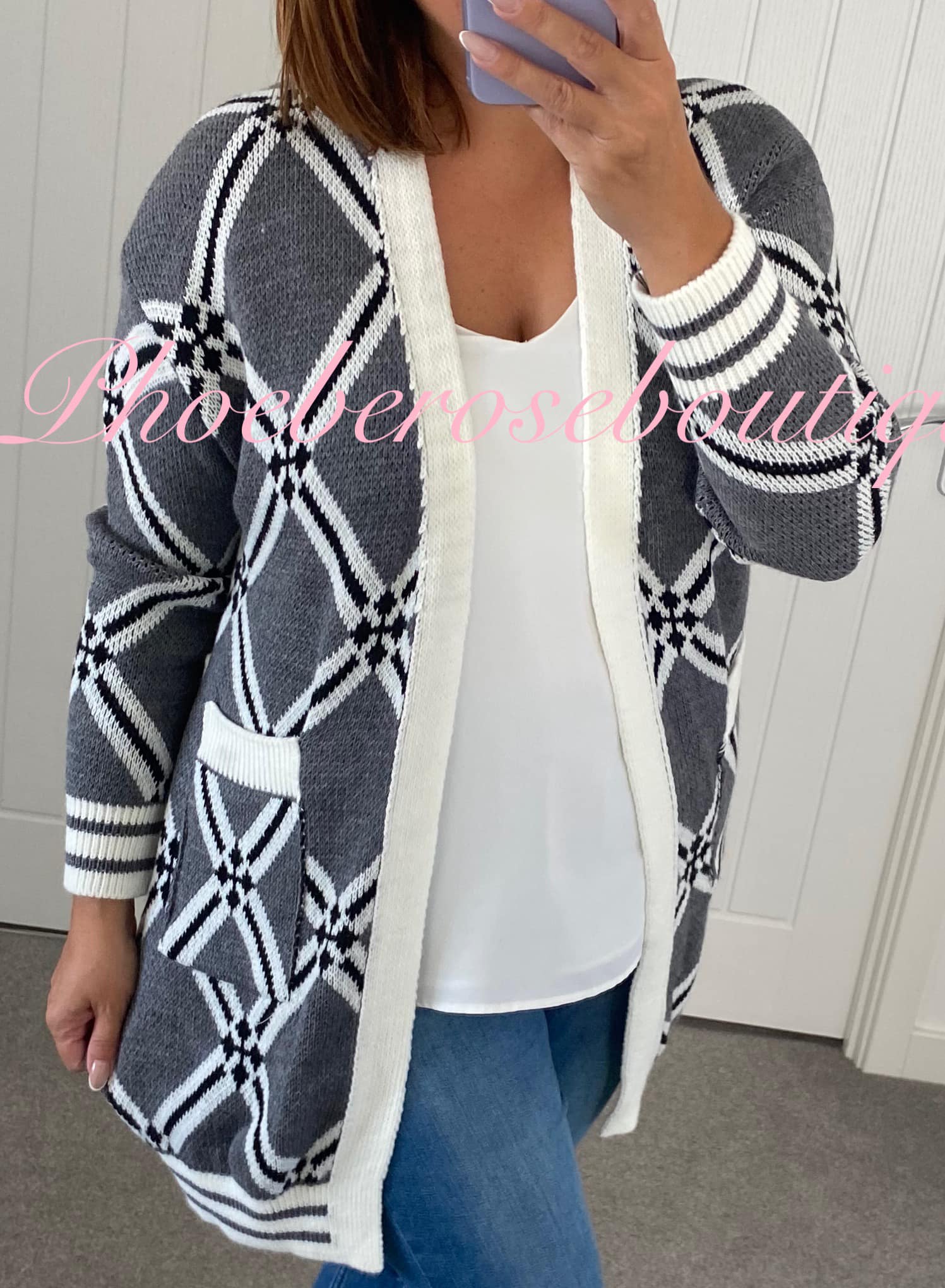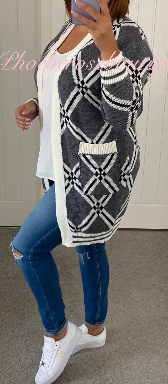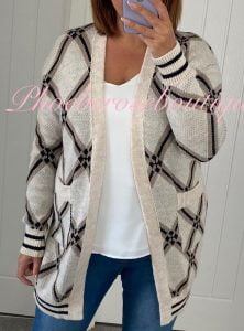 Be the first to review “Diamond Print Stripe Cuff Pocket Cardigan – Grey Mix”