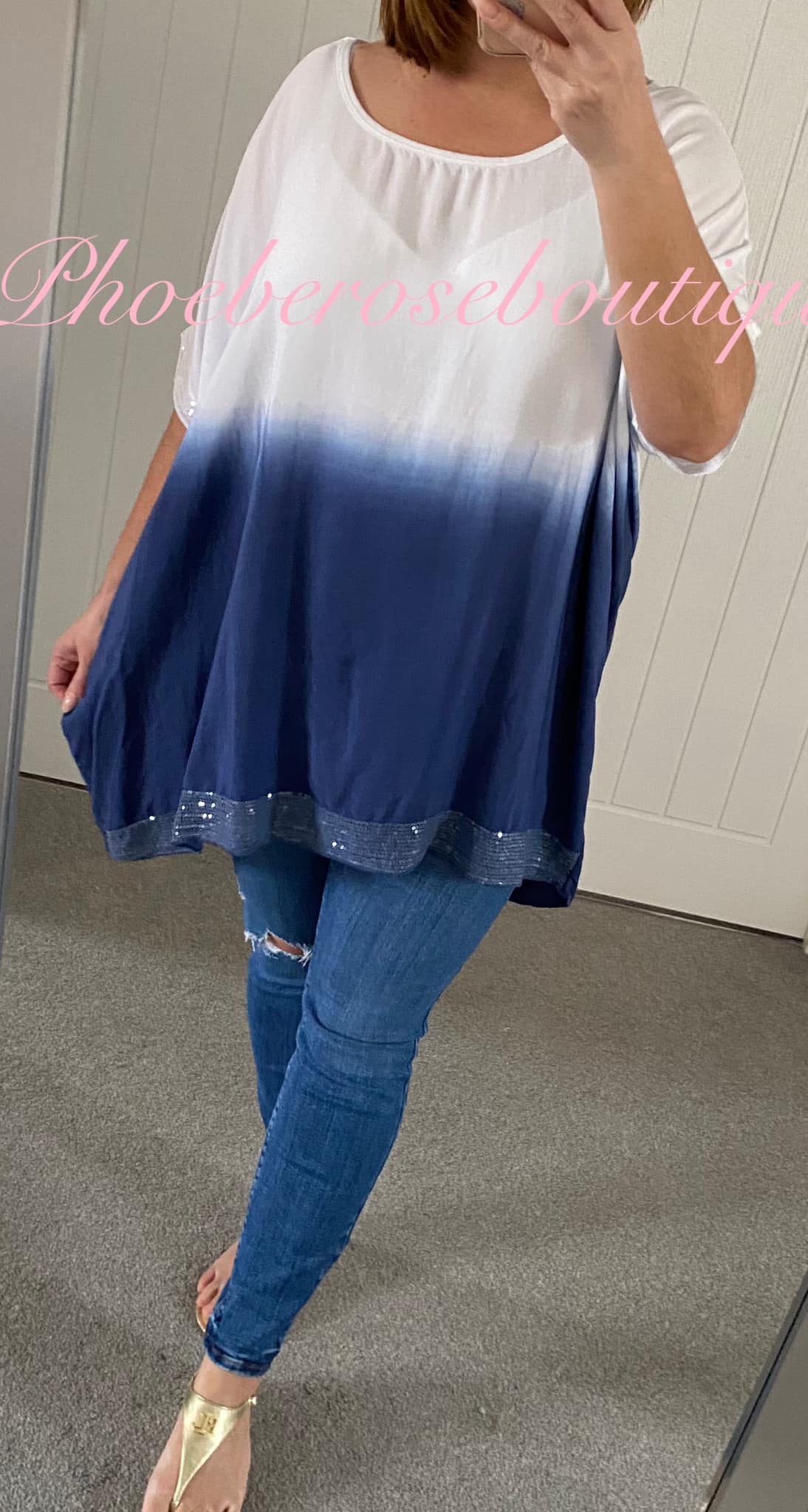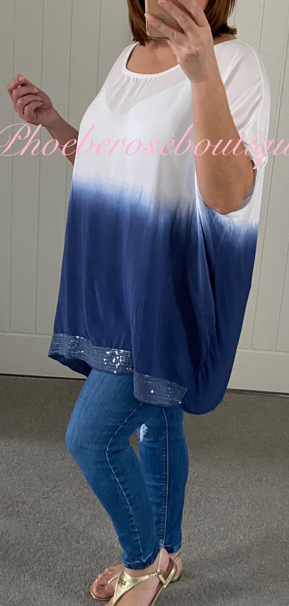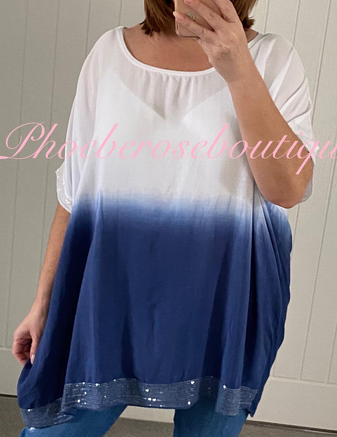 Be the first to review “Dip Dye Sequin Trim Loose Fit Top – Navy”