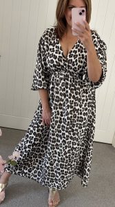 Stunning frill and tie front longline top with puff sleeves and flattering elasticated v neckline – One size fits up to a 16