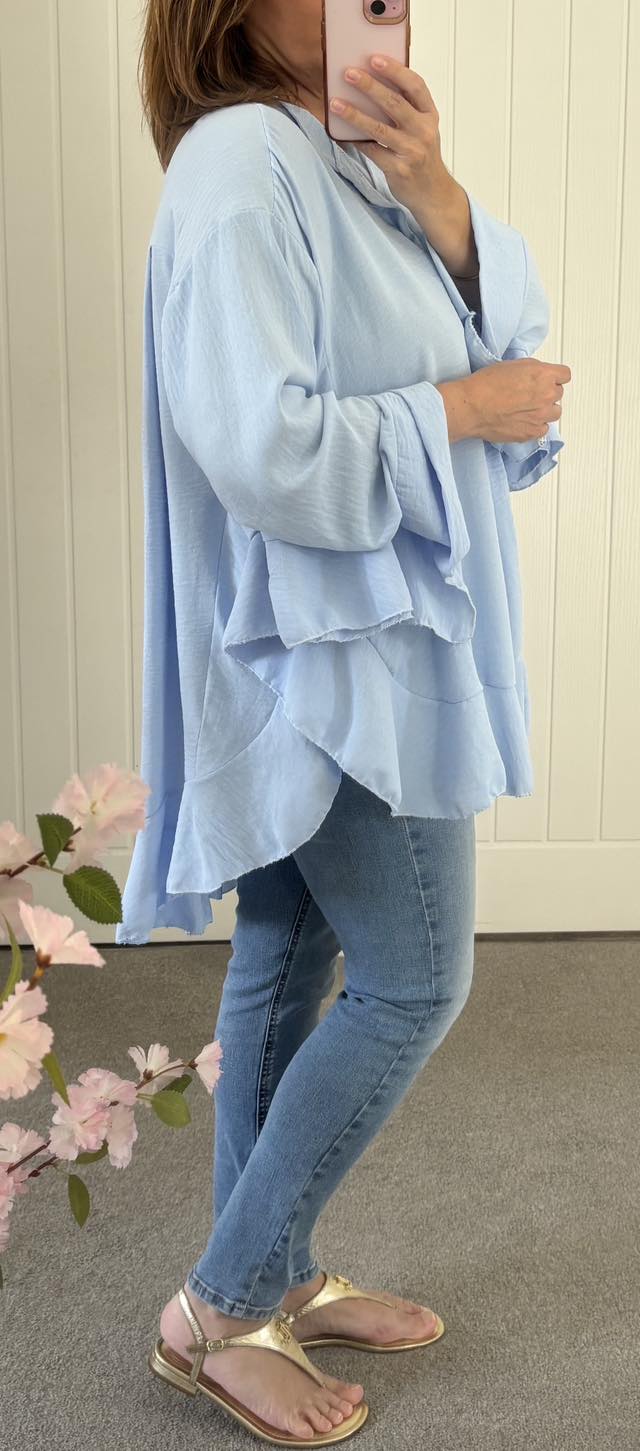 Frill Trim Oversized Tunic/Shirt – Soft Blue