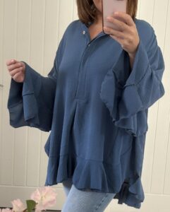 Be the first to review “Frill Trim Oversized Tunic/Shirt – Soft Blue”