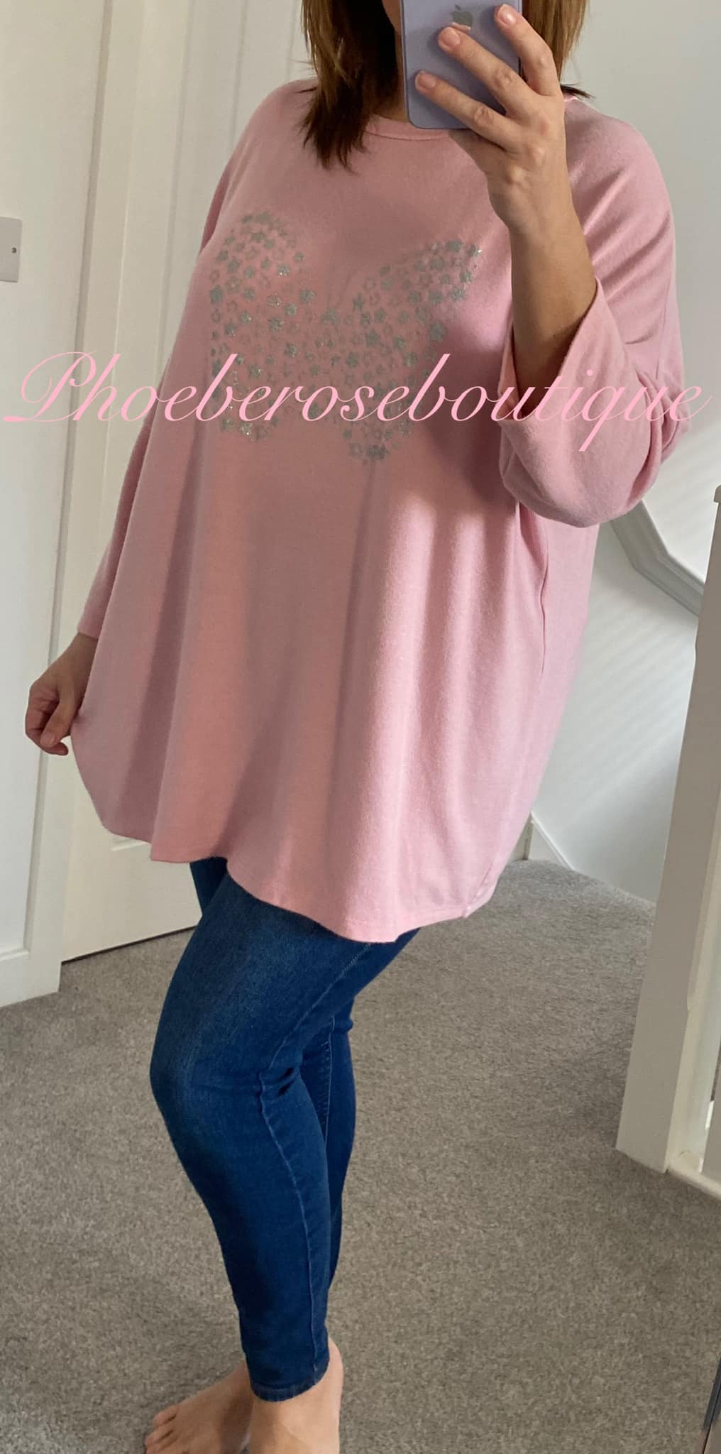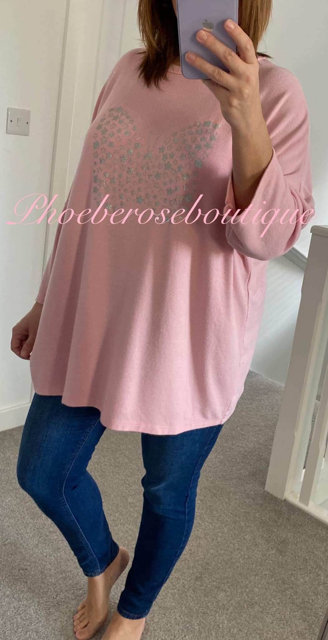 Be the first to review “Glitter Butterfly Soft Brushed Jersey Short Sleeve Top – Soft Pink”