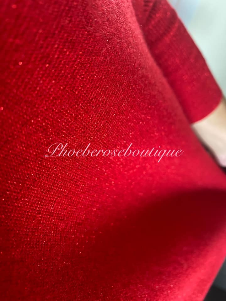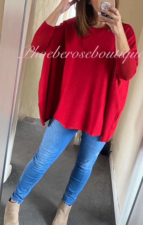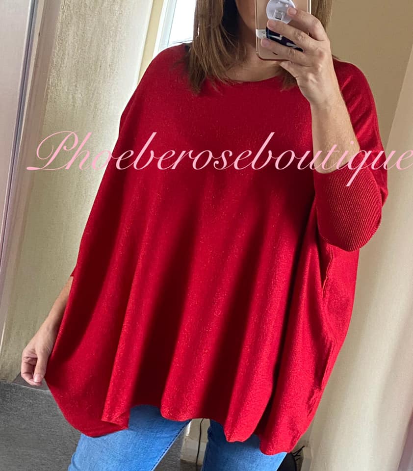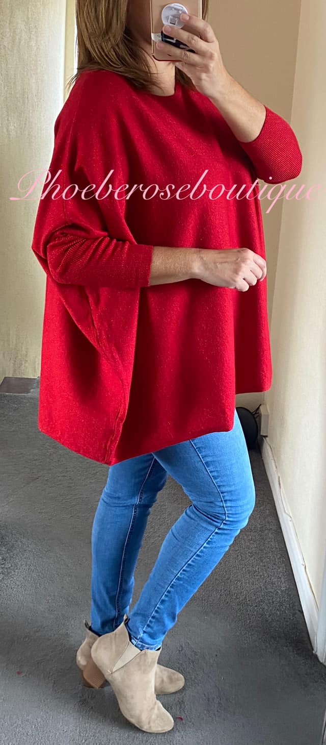Glitter Fleck Loose Fit Oversized Soft Knit Jumper – Red