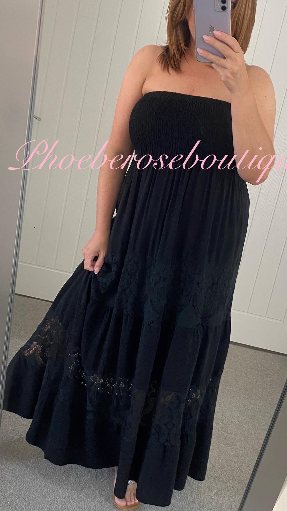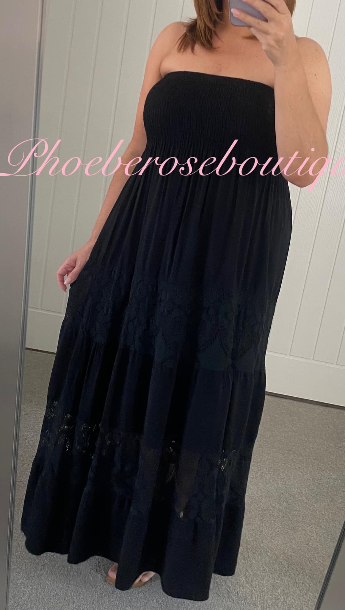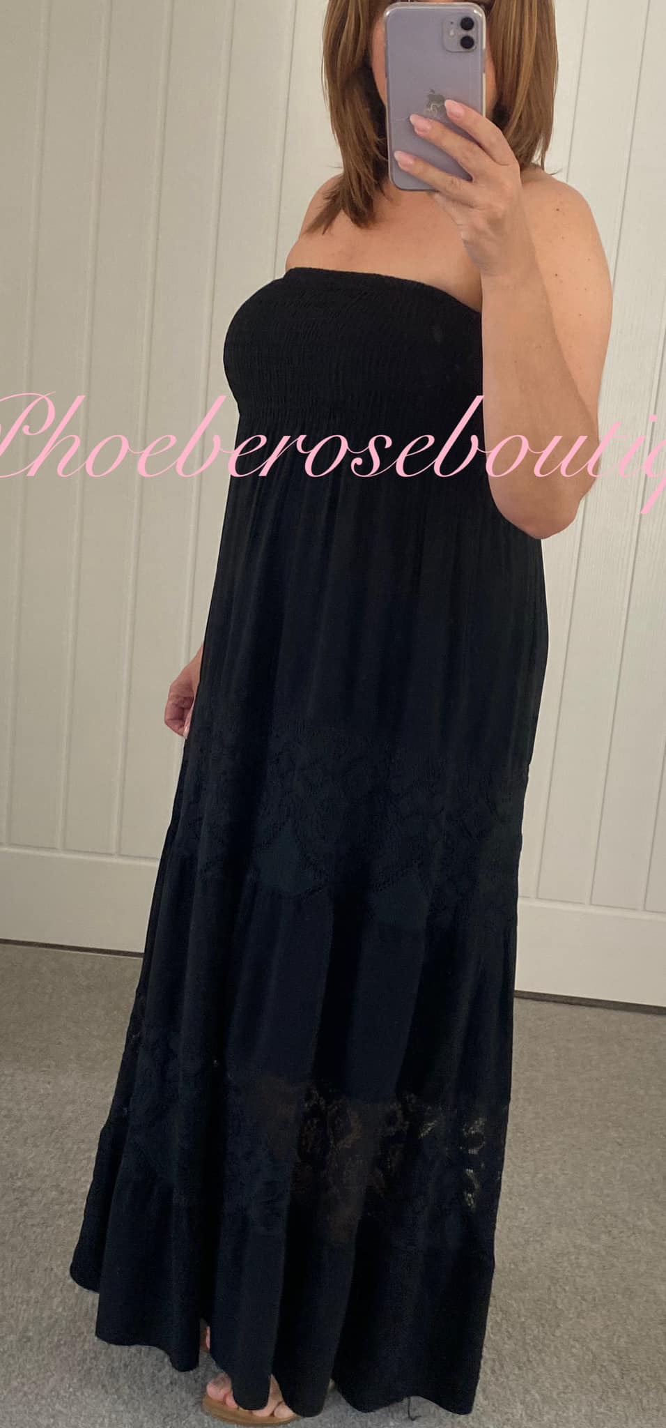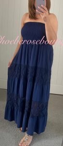 Gorgeous maxi dress elasticated smock bustline – A line tiered panel skirt part lined, one size fits up to a 16