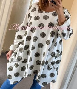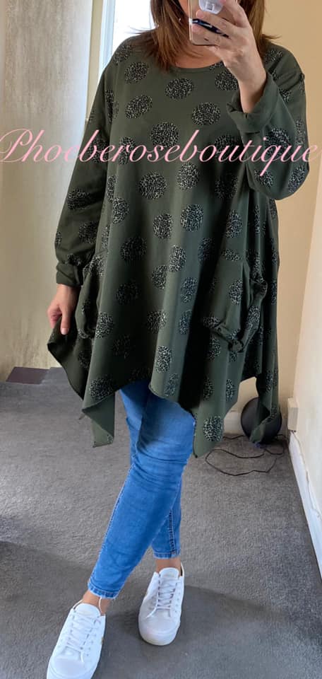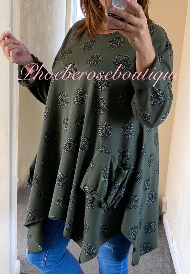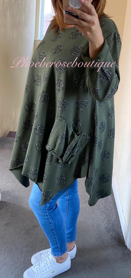 Lepo Spot Print Drape Pocket Sweat Top – Khaki