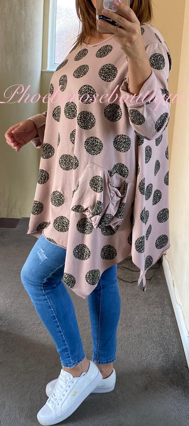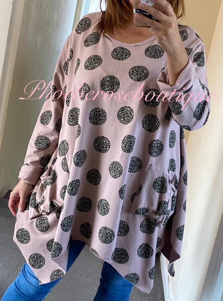 Lepo Spot Print Drape Pocket Sweat Top – Soft Pink