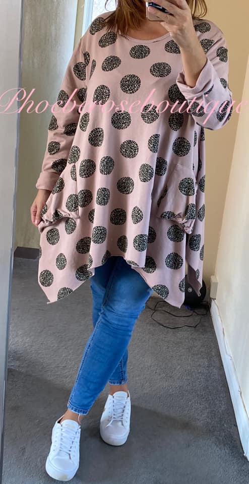 Be the first to review “Lepo Spot Print Drape Pocket Sweat Top – Soft Pink”