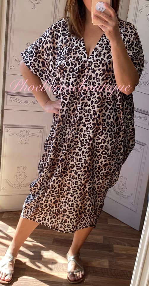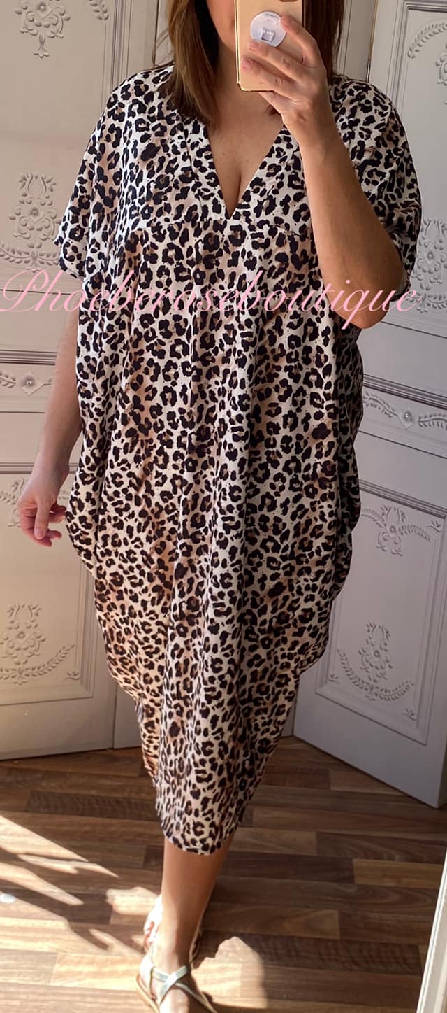Be the first to review “Animal V Neck Loose Fit Batwing Drape Silky Dress”