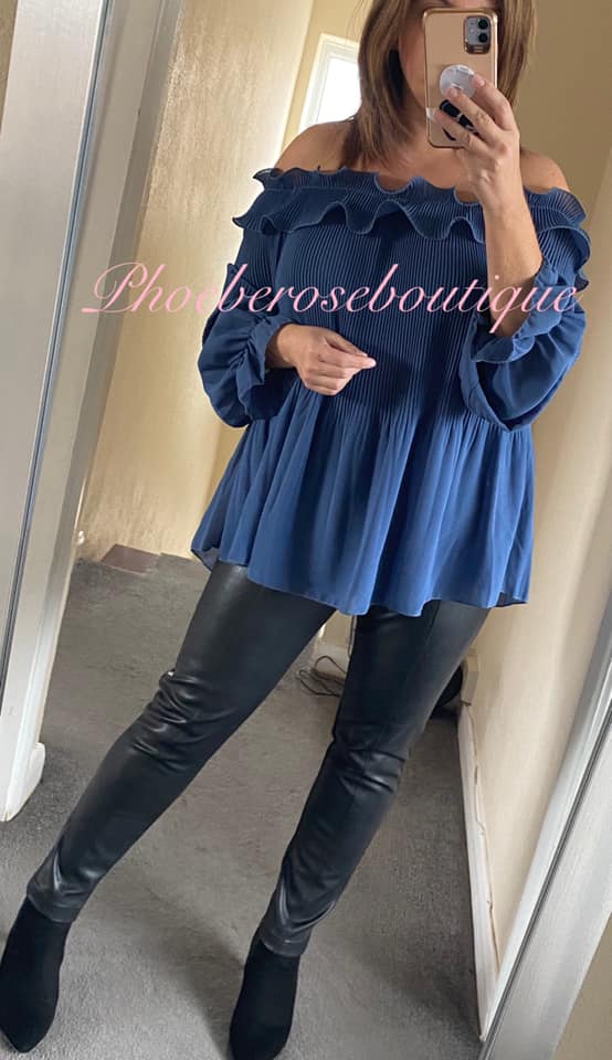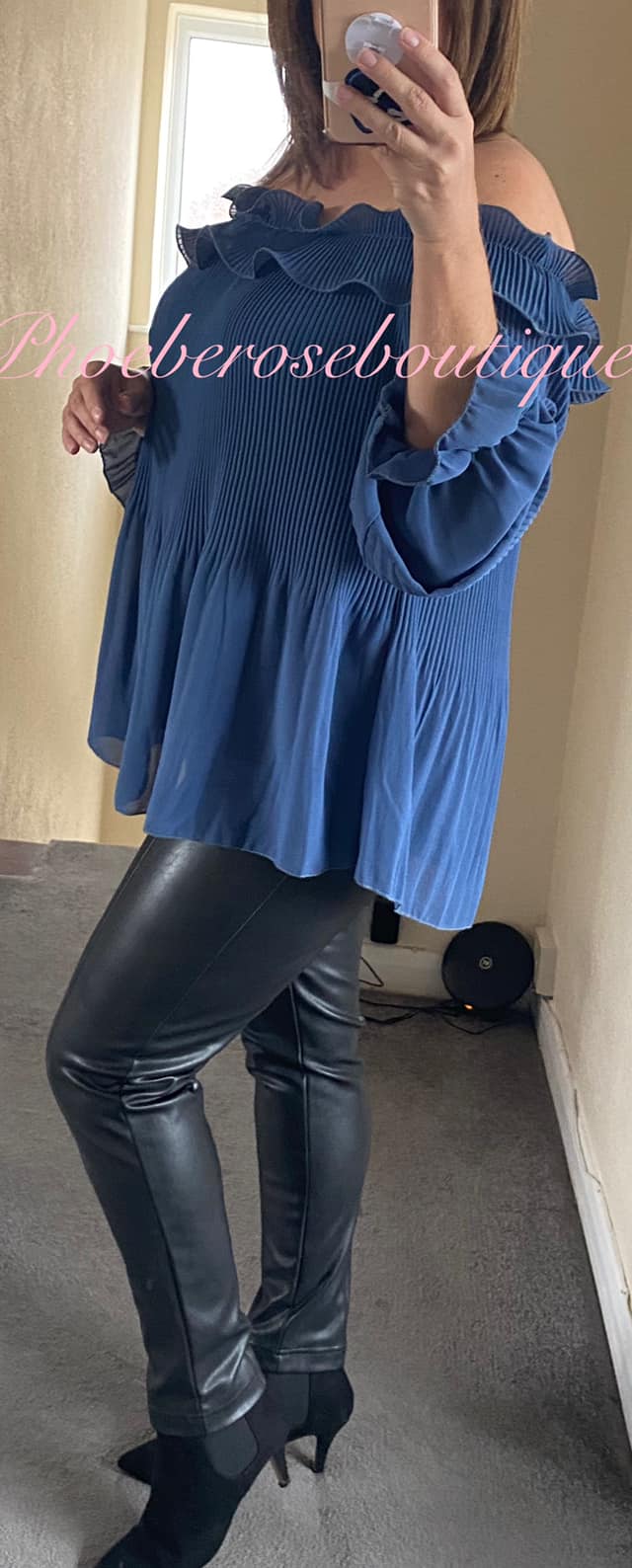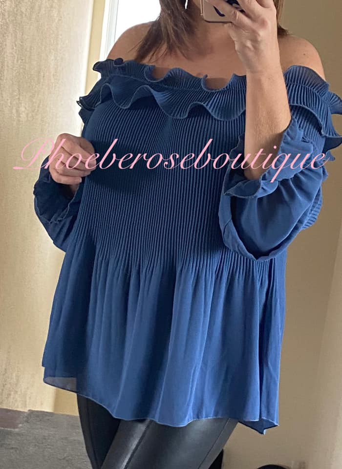 Be the first to review “Long Sleeve Pleated Chiffon Ruffle Bandeau Top – Denim Blue”