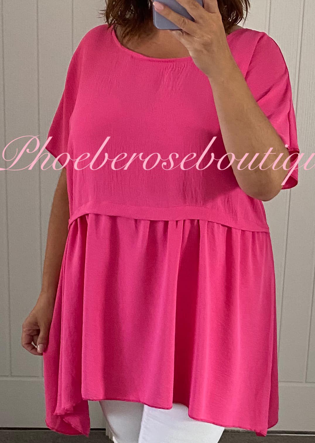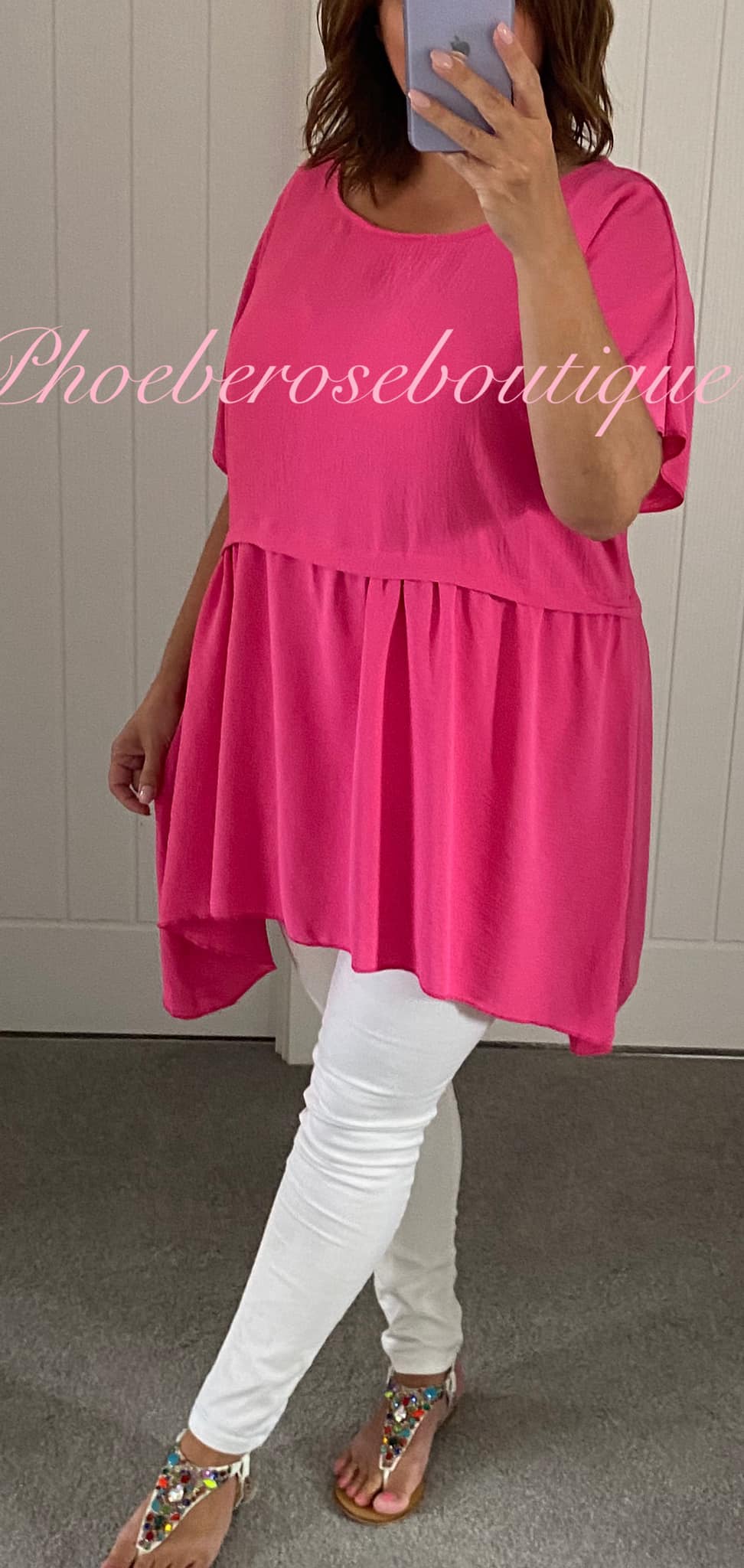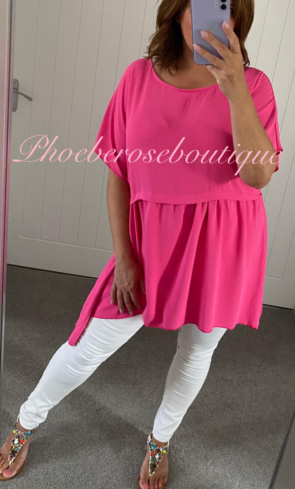 Loose Fit Mock 2 Part Crepe Feel Top – Hot Pink