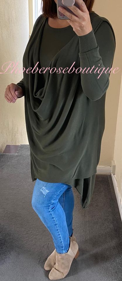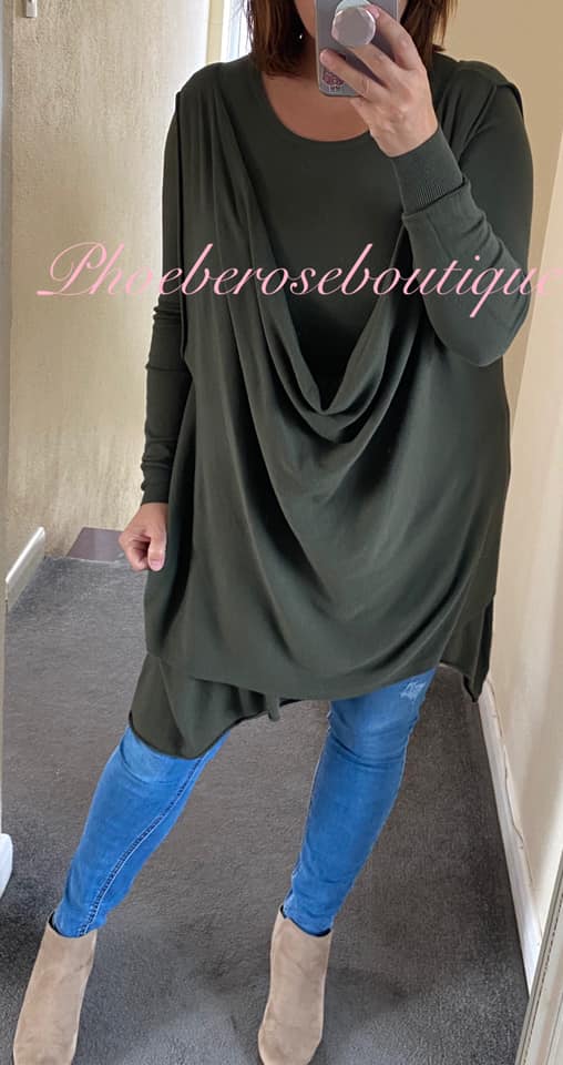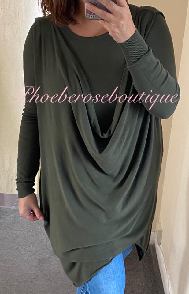 Lux Extra Soft Knit 2 part Longline Drape Jumper – Khaki