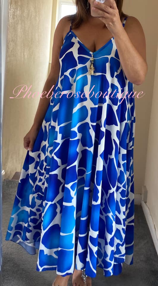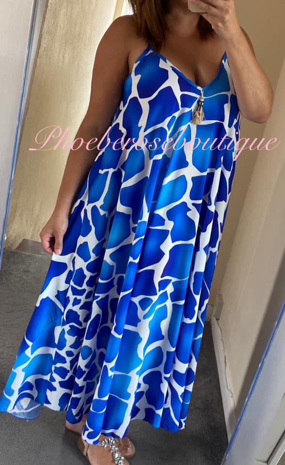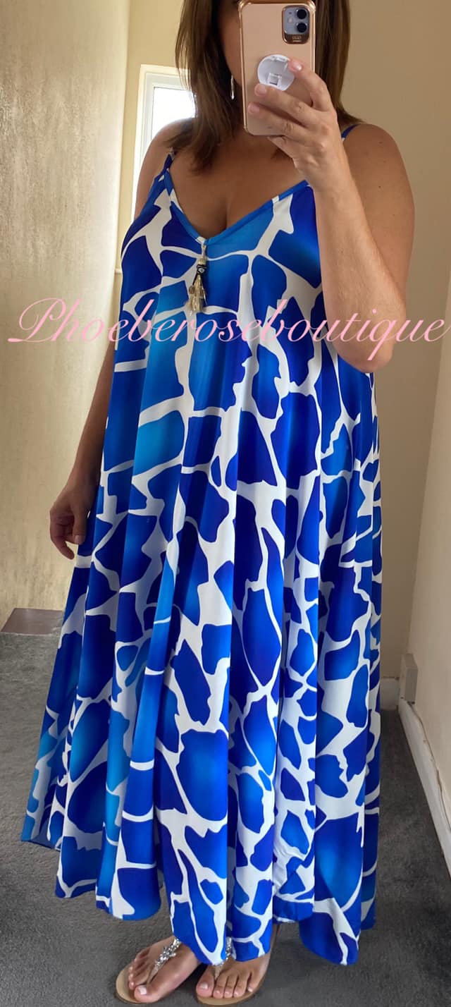 Lux Giraffe Print Tassel Trim Maxi Dress – Blue