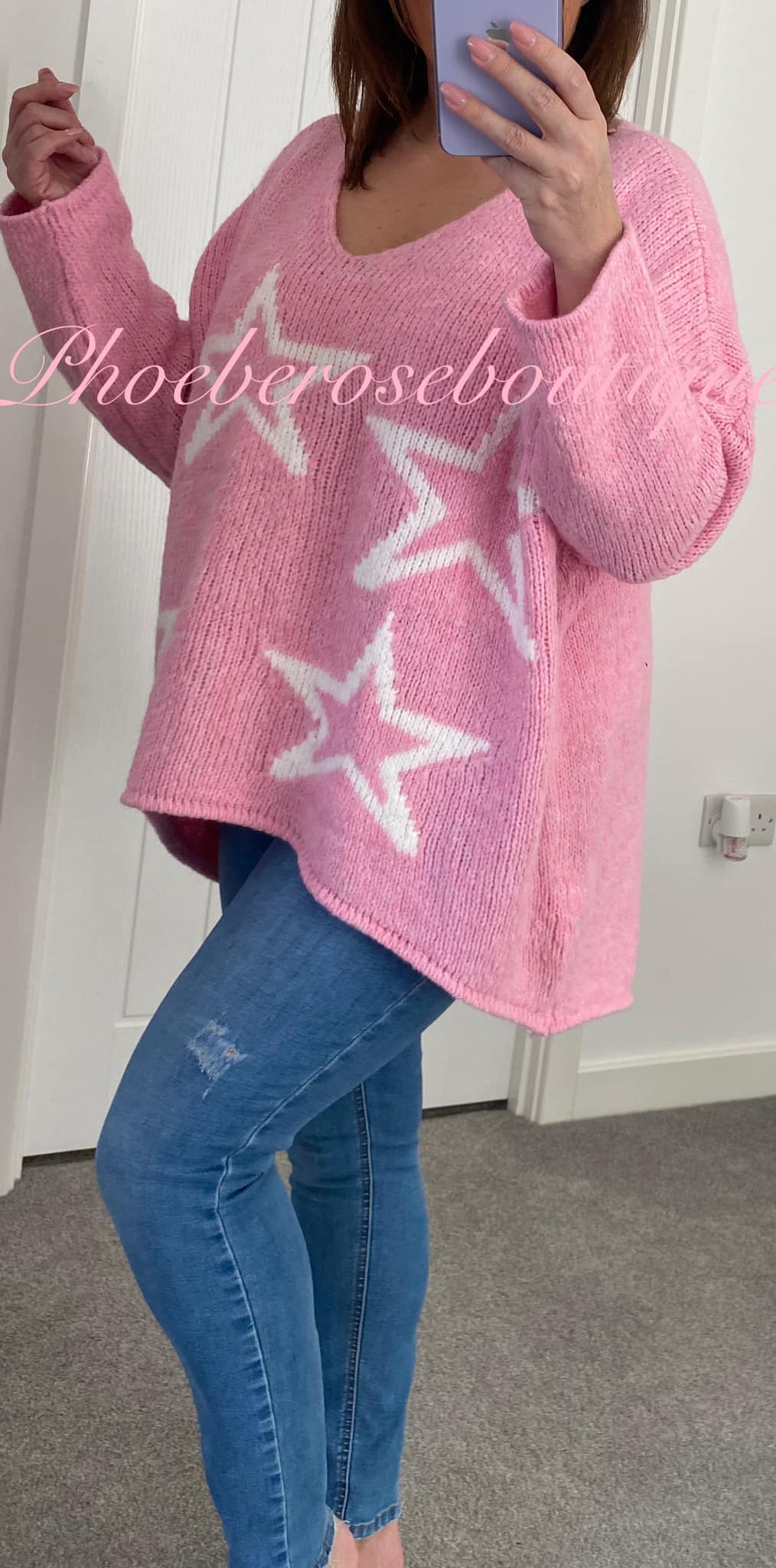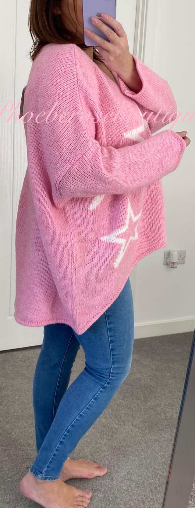 Lux Soft Knit Chunky Star Design Hi/Low Jumper – Bubblegum Pink