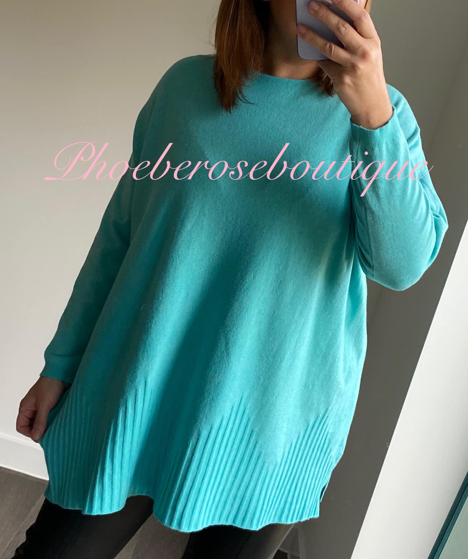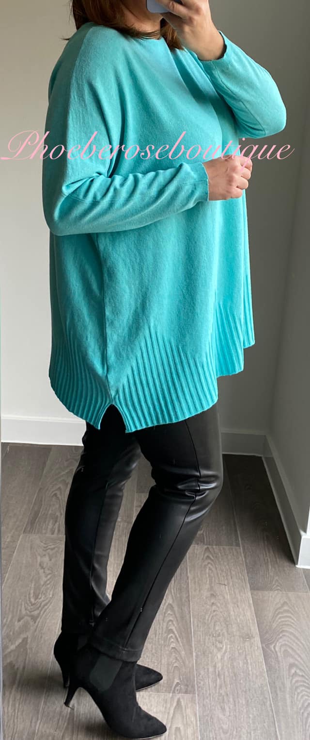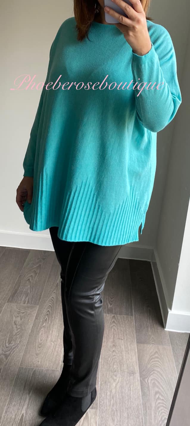 Lux Supersoft Knit Ribbed Hem Detail Jumper – Aqua