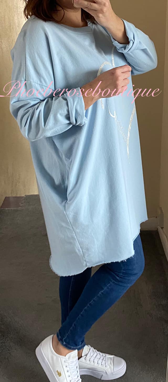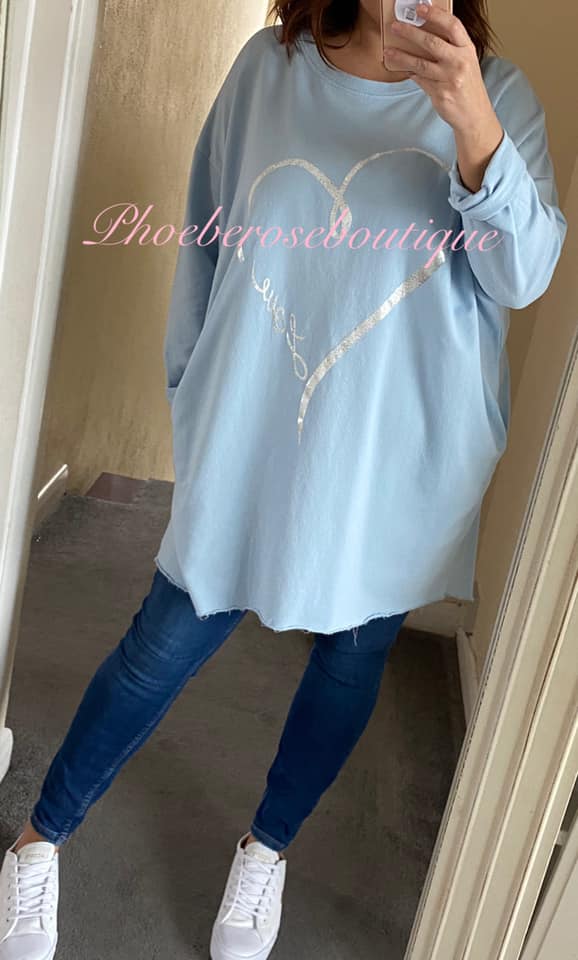 Metallic Love Design Lightweight Pocket Sweat Top/Tunic – Baby Blue