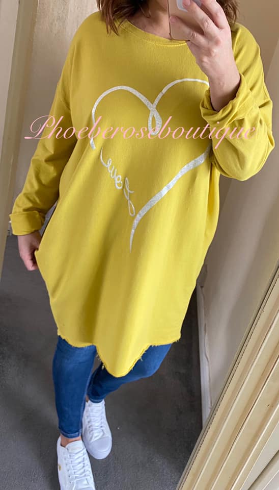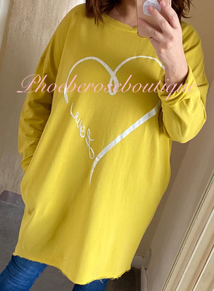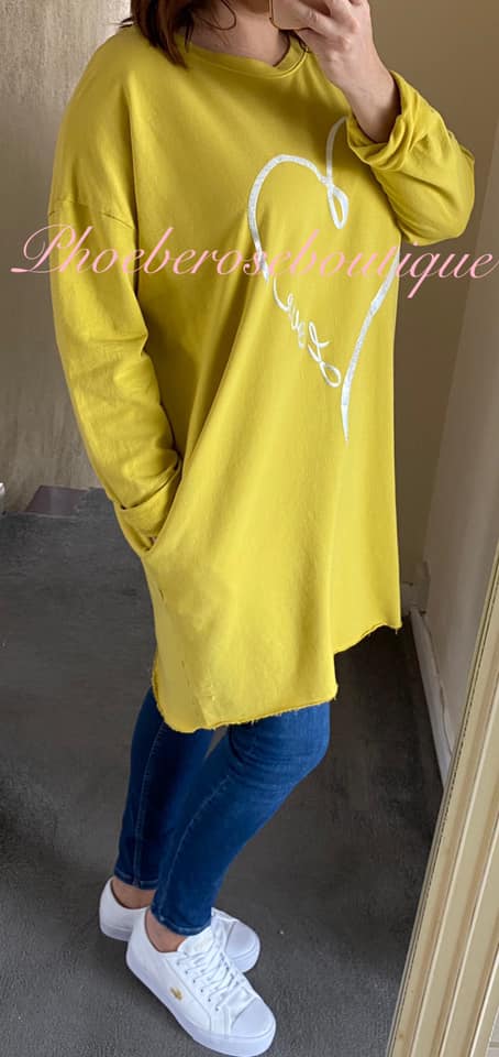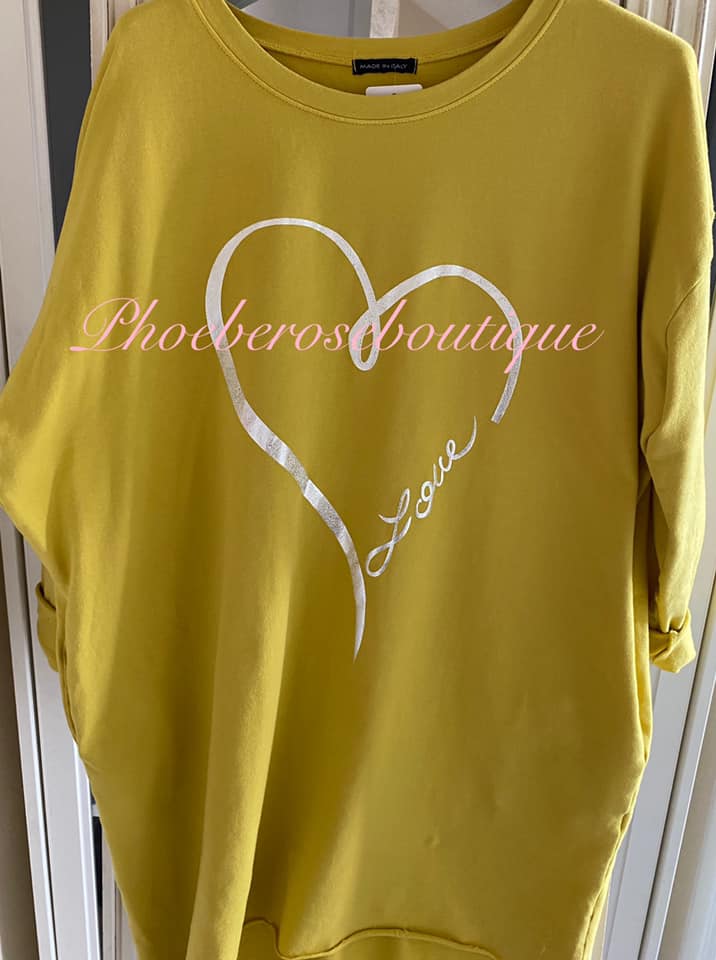 Metallic Love Design Lightweight Pocket Sweat Top/Tunic – Yellow