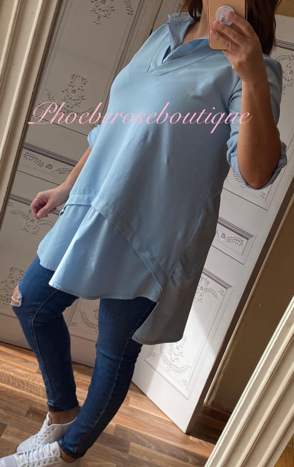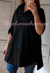 *Cotton feel shirt collar, hem and sleeve with stretch lightweight sweat fabric over top