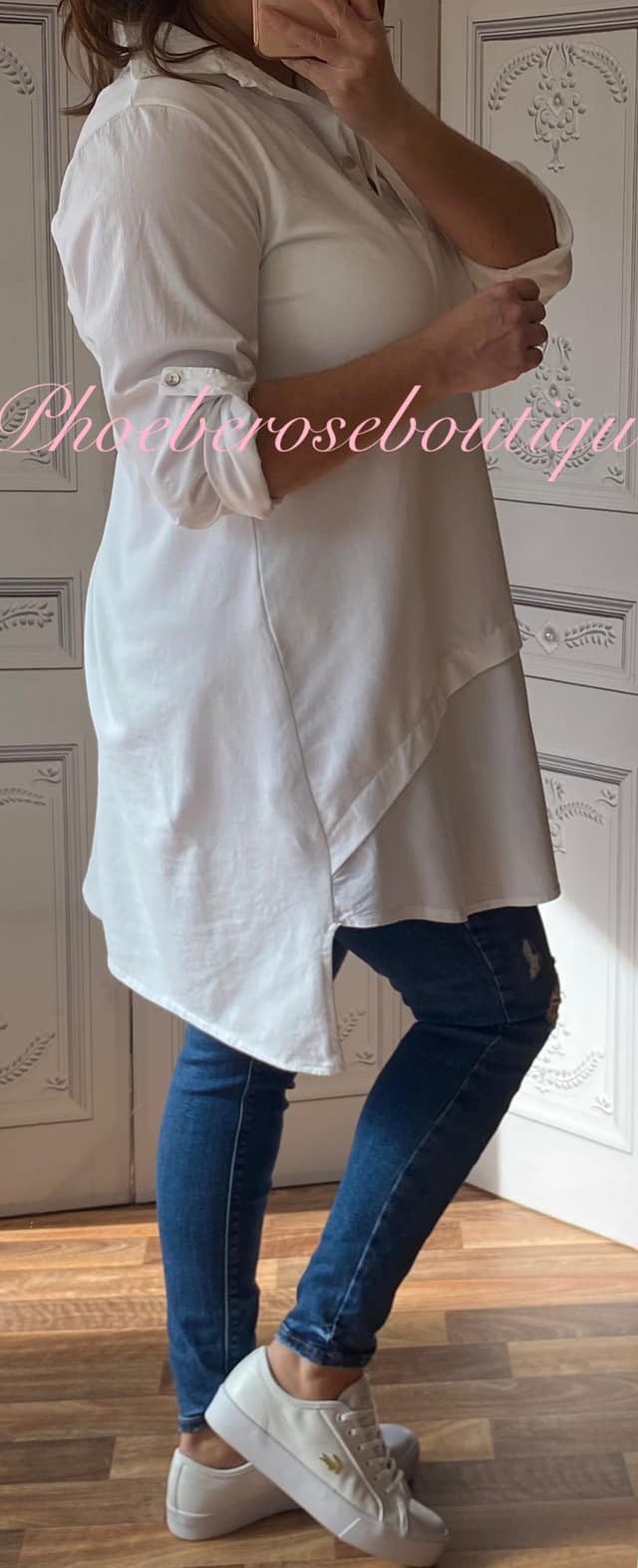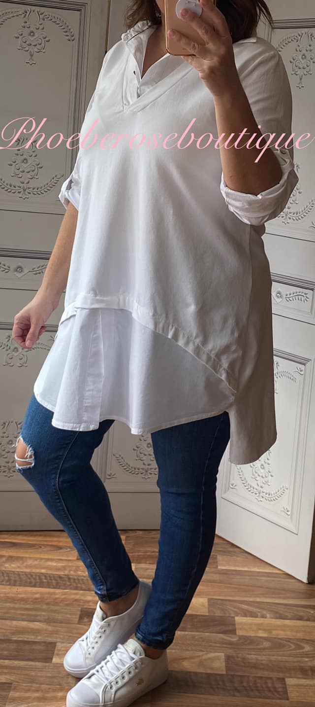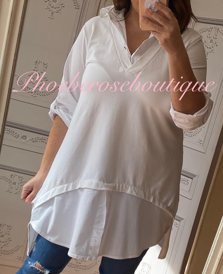 *Cotton feel shirt collar, hem and sleeve with stretch lightweight sweat fabric over top