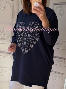 Be the first to review “Multi Heart Stud Loose Fit Pocket Sweat Tunic/Top – Off White”