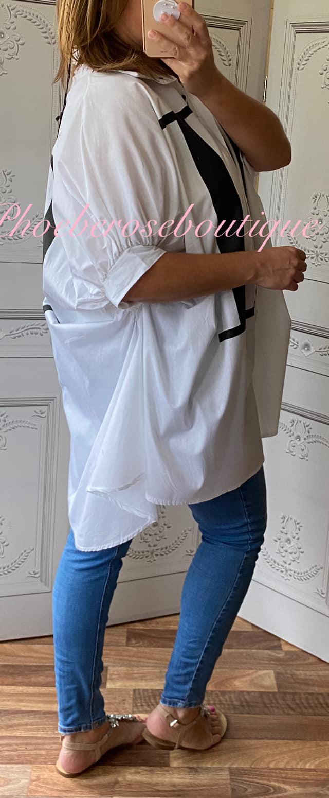 NICE Oversized Loose Fit Logo Cocoon Shirt – White/Black