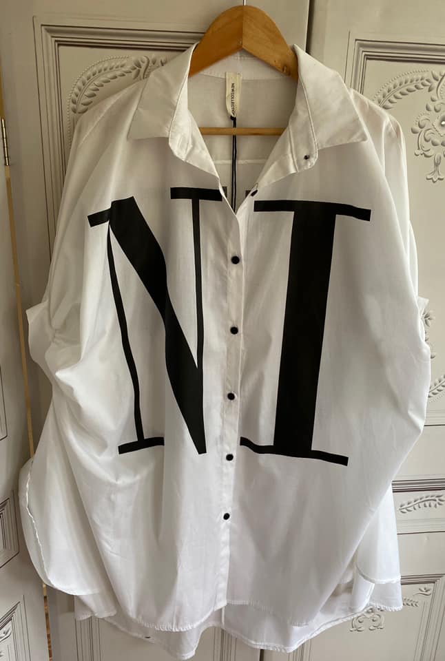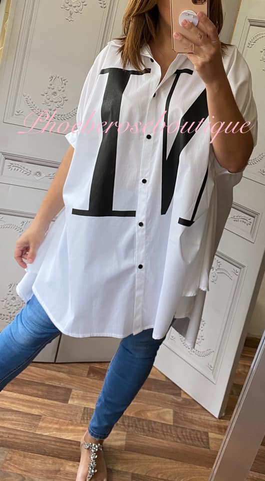 Be the first to review “NICE Oversized Loose Fit Logo Cocoon Shirt – White/Black”