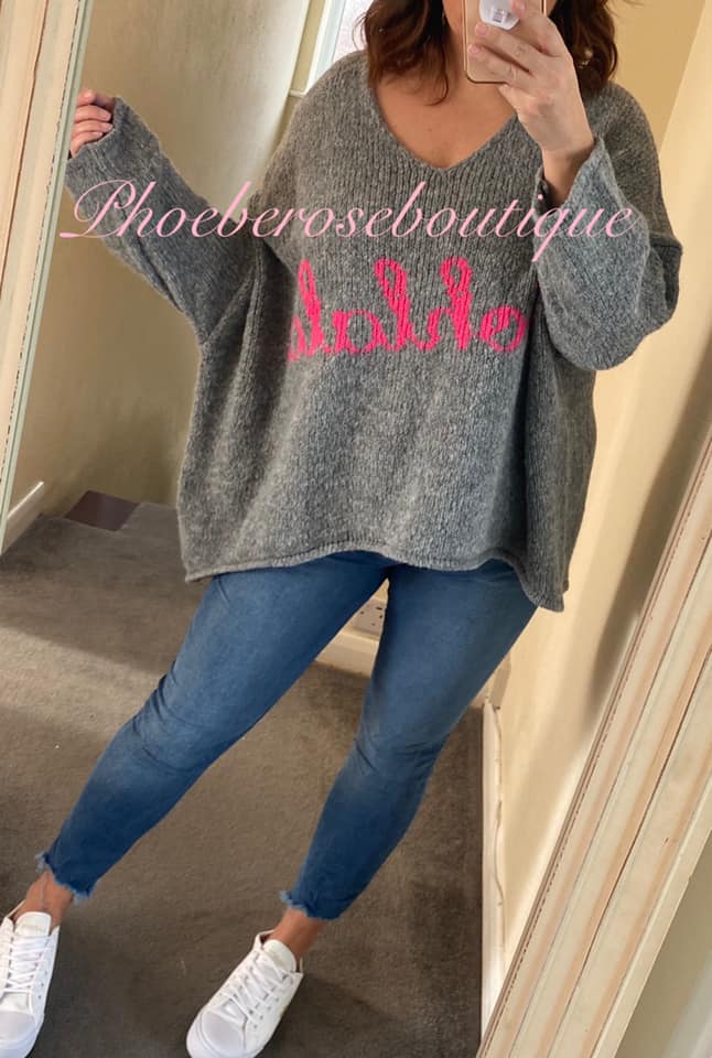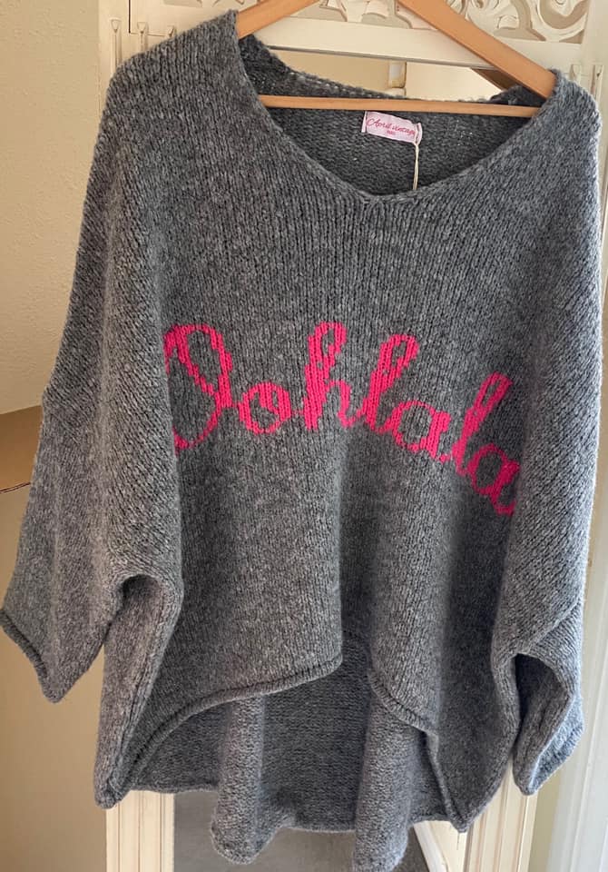 ‘Ohh Lala’ Oversized Slouch Soft Chunky Knit Jumper – Grey