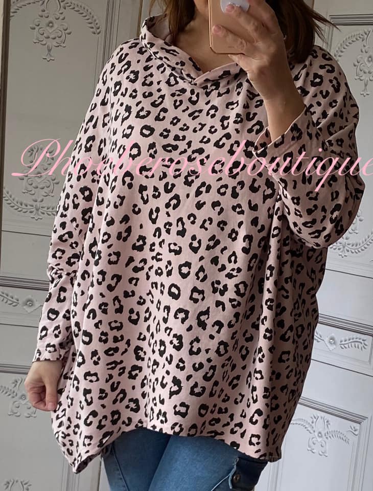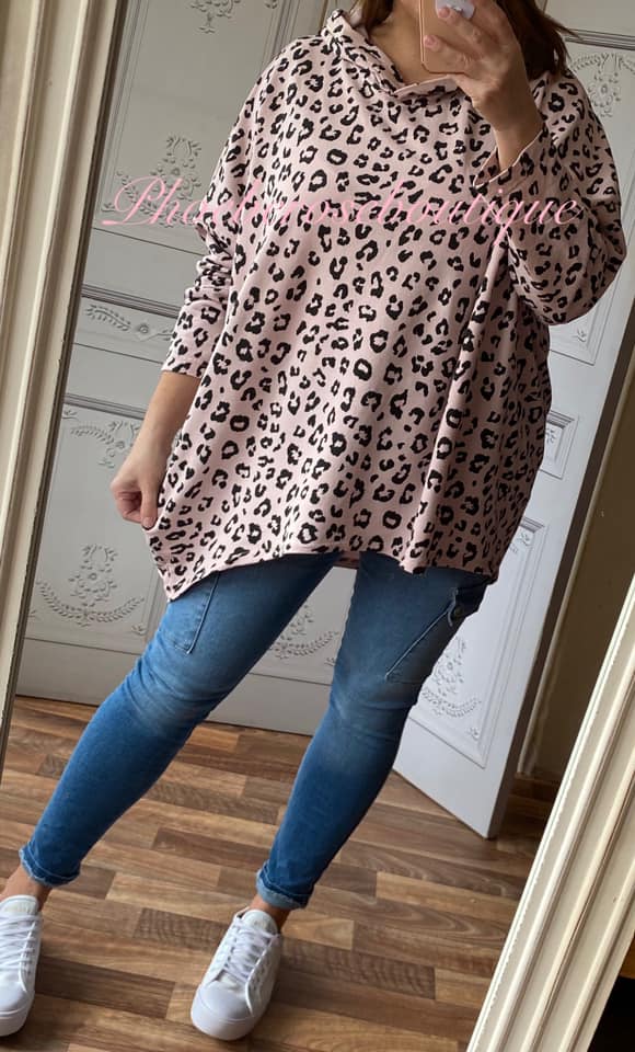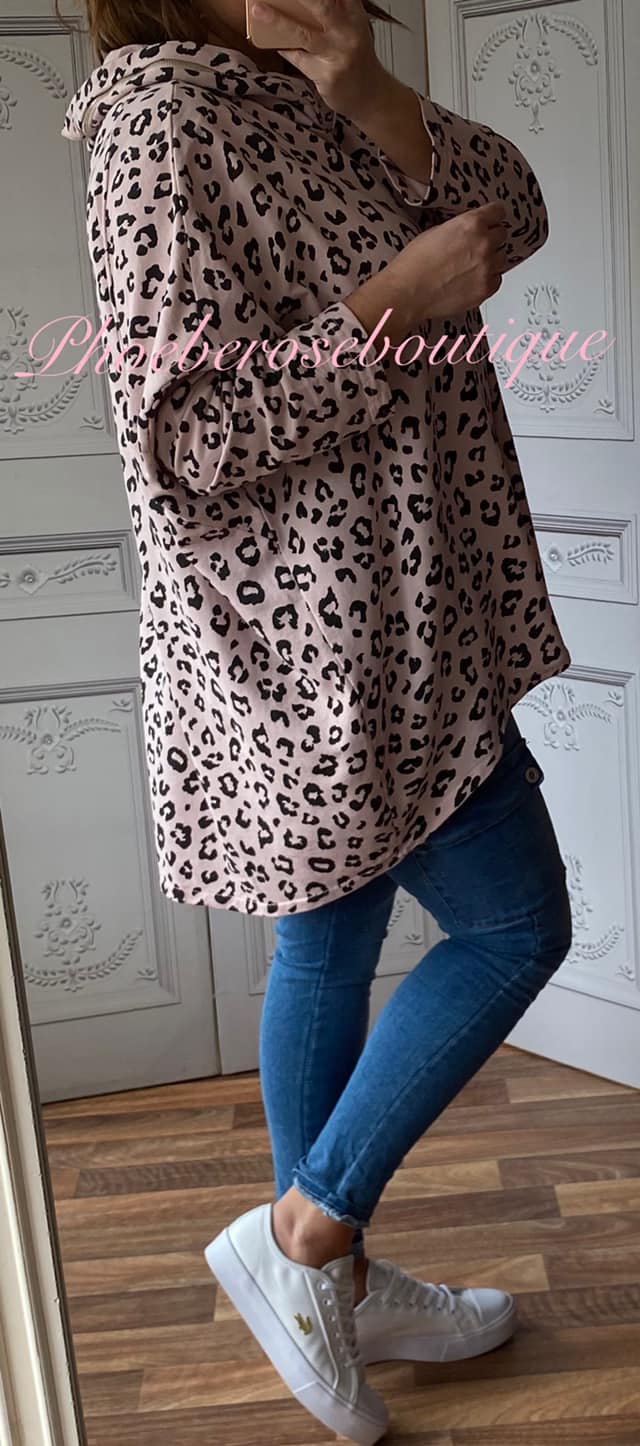 Be the first to review “Oversized Animal Print Zip Hooded Top – Soft Pink”