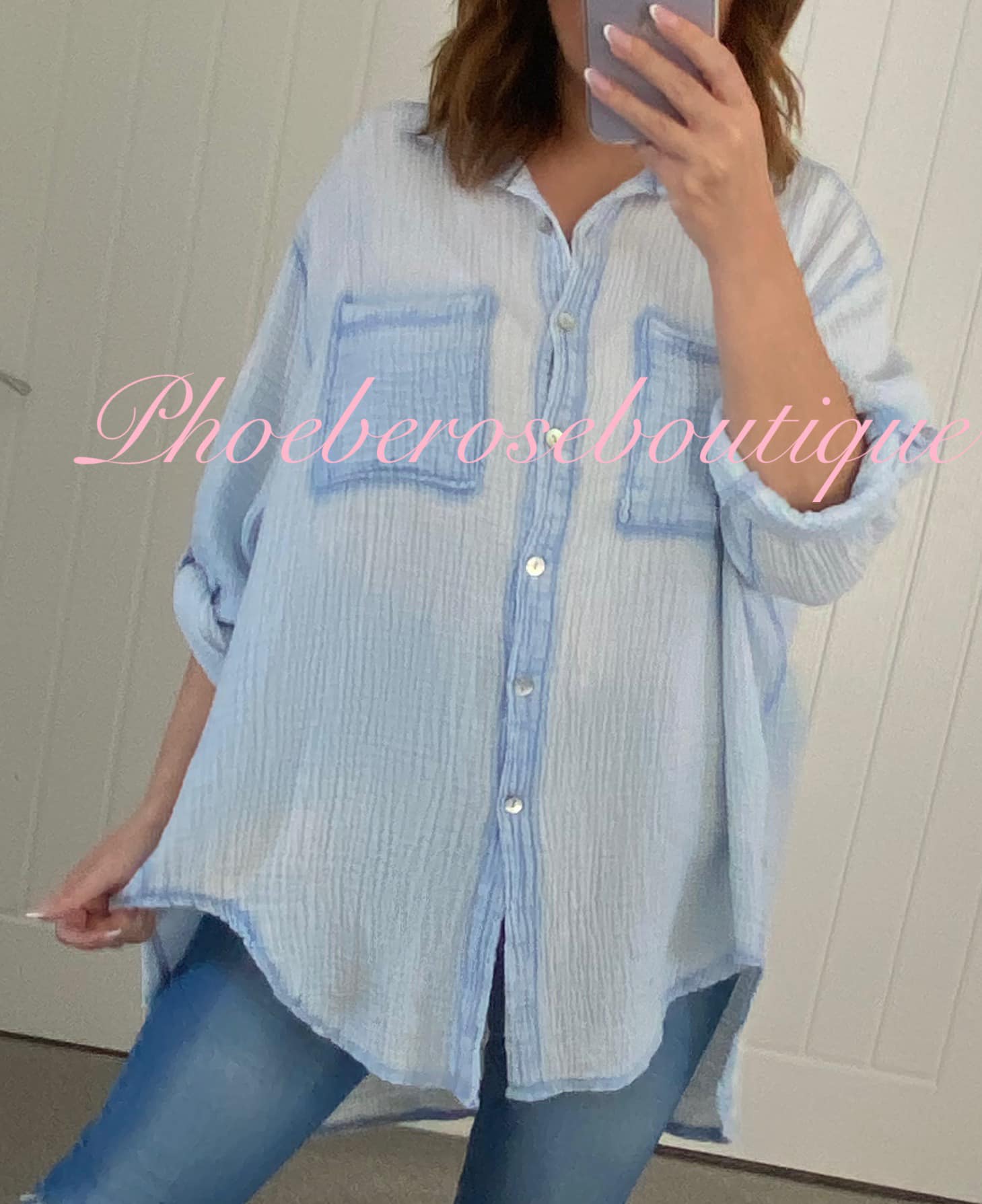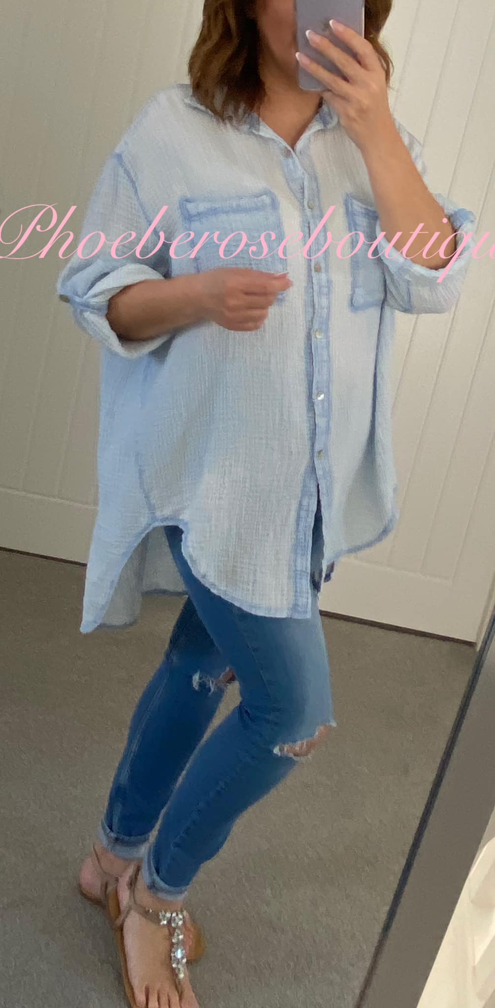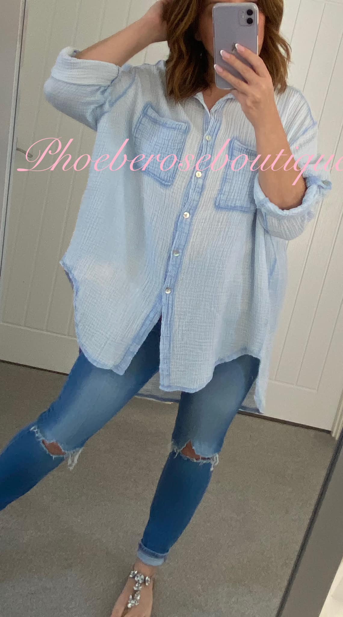 Oversized Cotton Cheesecloth Shirt – Soft Blue