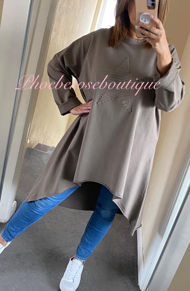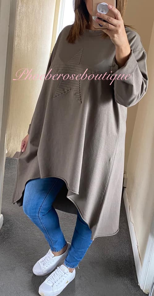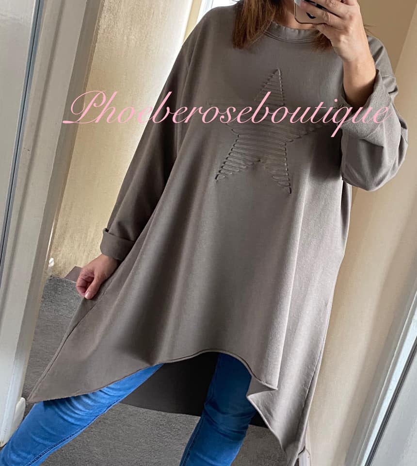 *Lovely lightweight soft stretch sweat feel fabric *Oversized dipped hem style *One size fits 16-20 *Longline style, perfect over leggings or skinnies *Feels so lovely on!