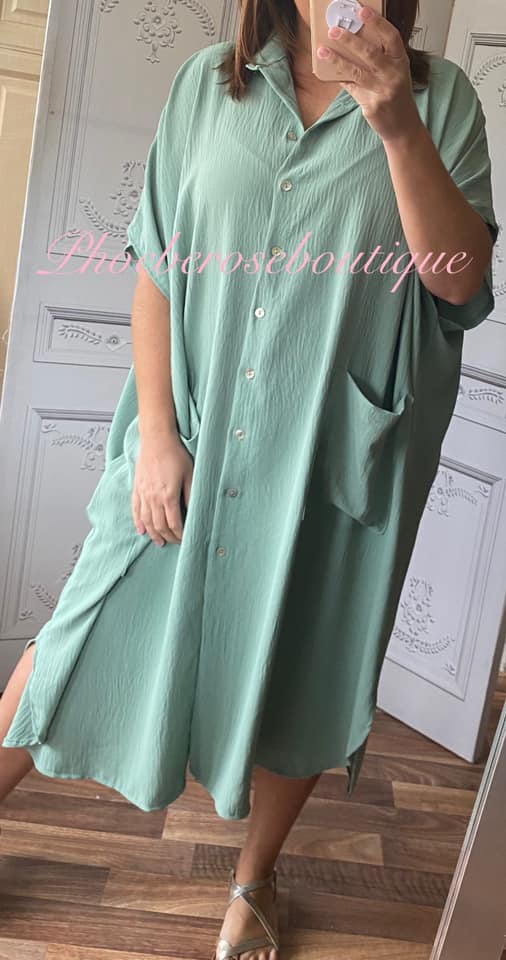 Oversized Pocket Shirt Dress – Sage Green