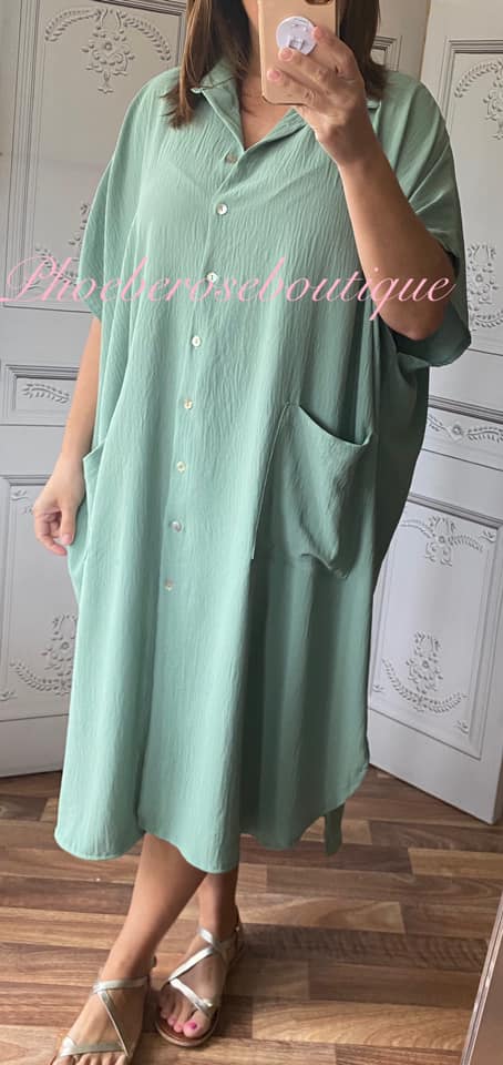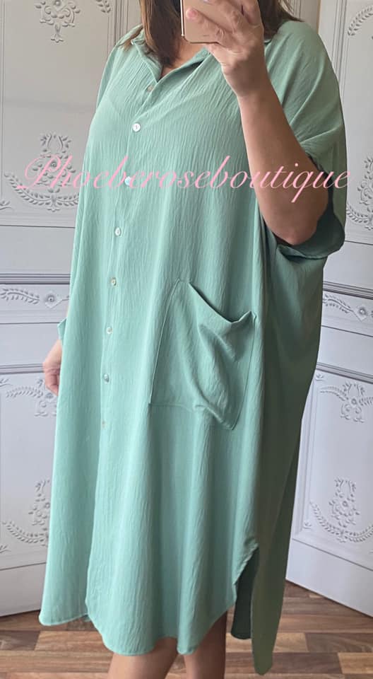 Be the first to review “Oversized Pocket Shirt Dress – Sage Green”
