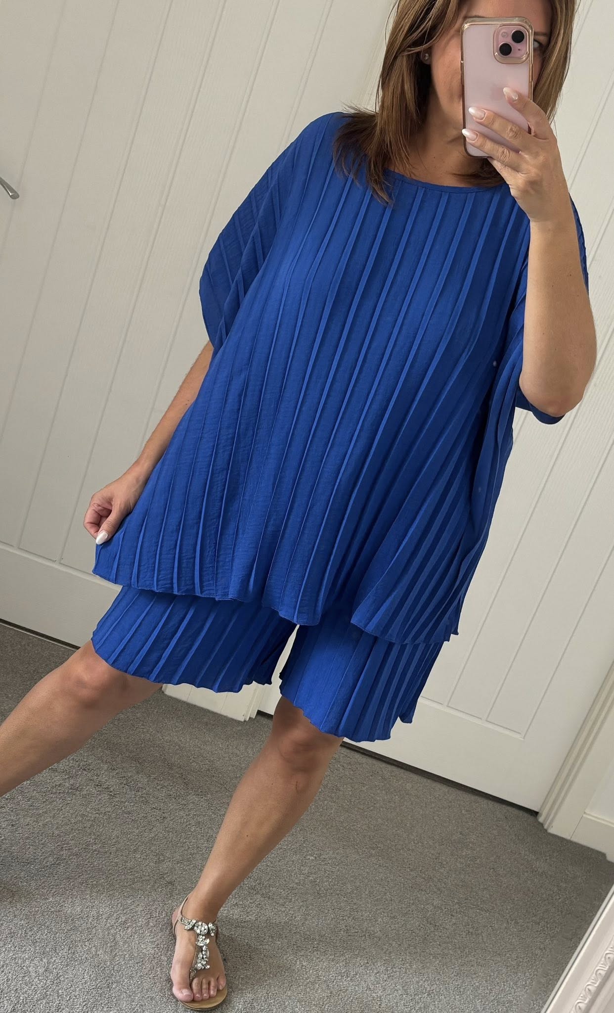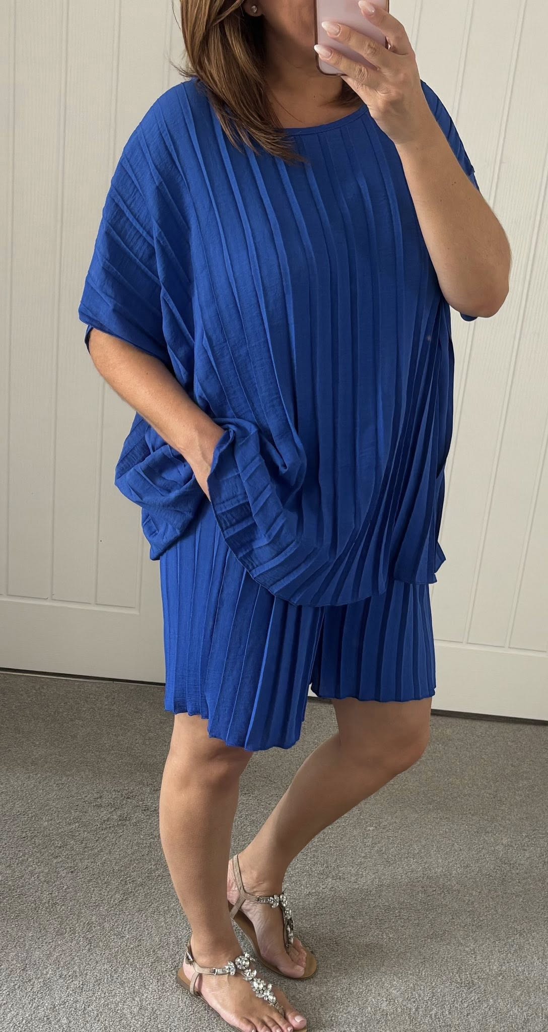 Pleat Short Loose Fit Co-Ord – Royal Blue