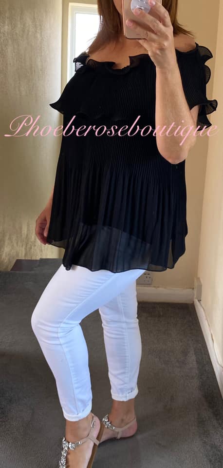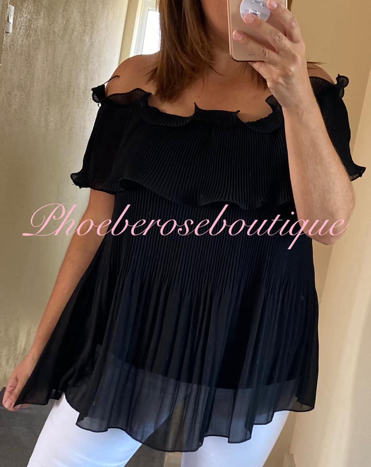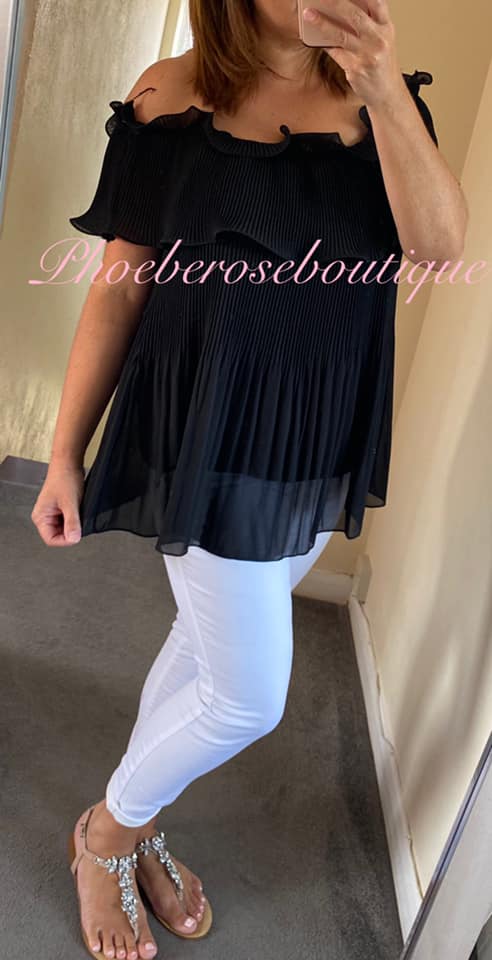 Pleated Chiffon Ruffle Bandeau Top – Black