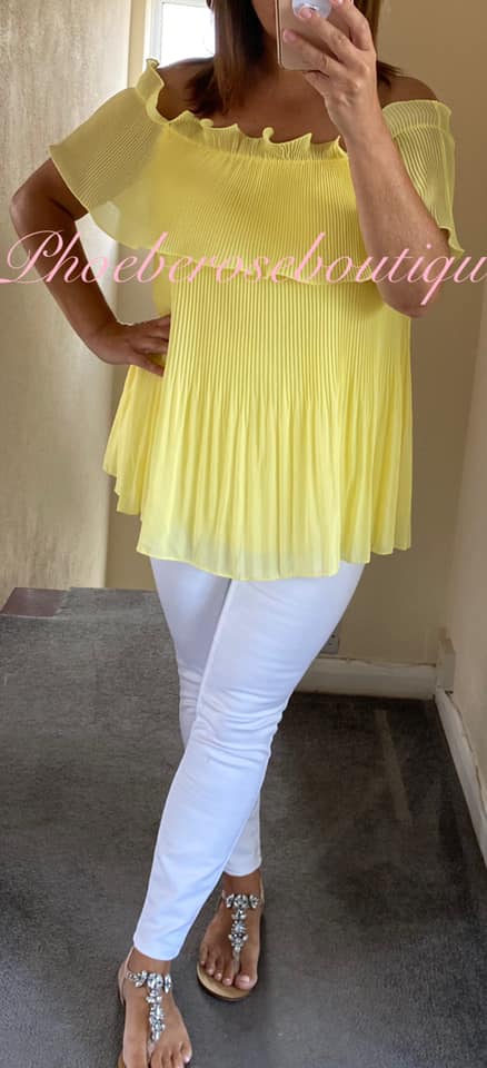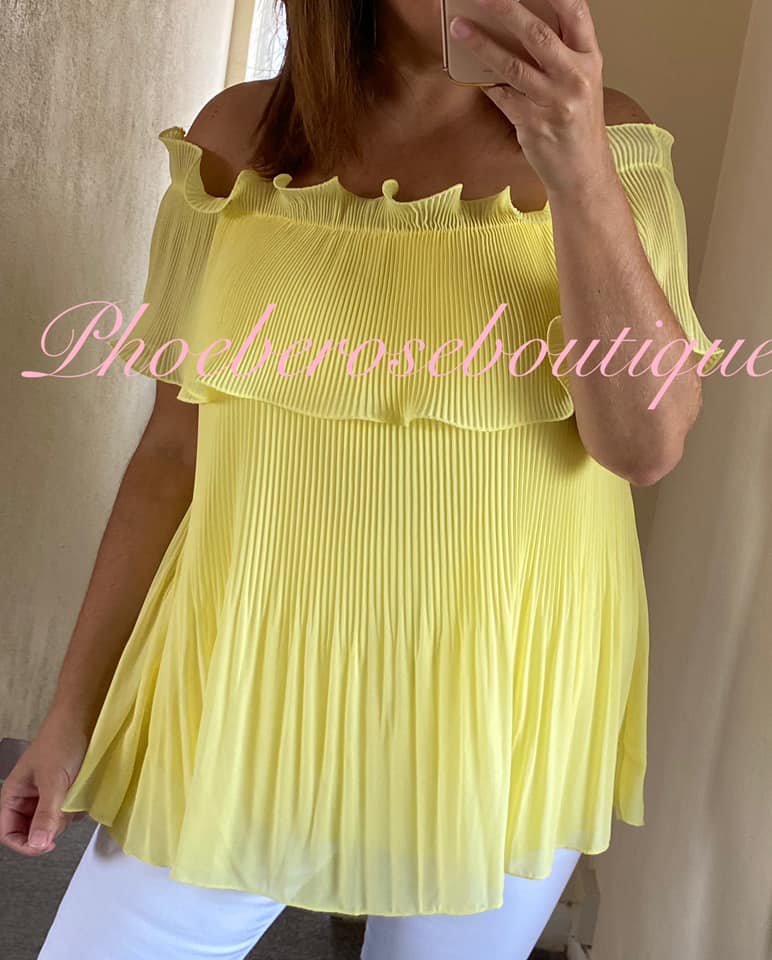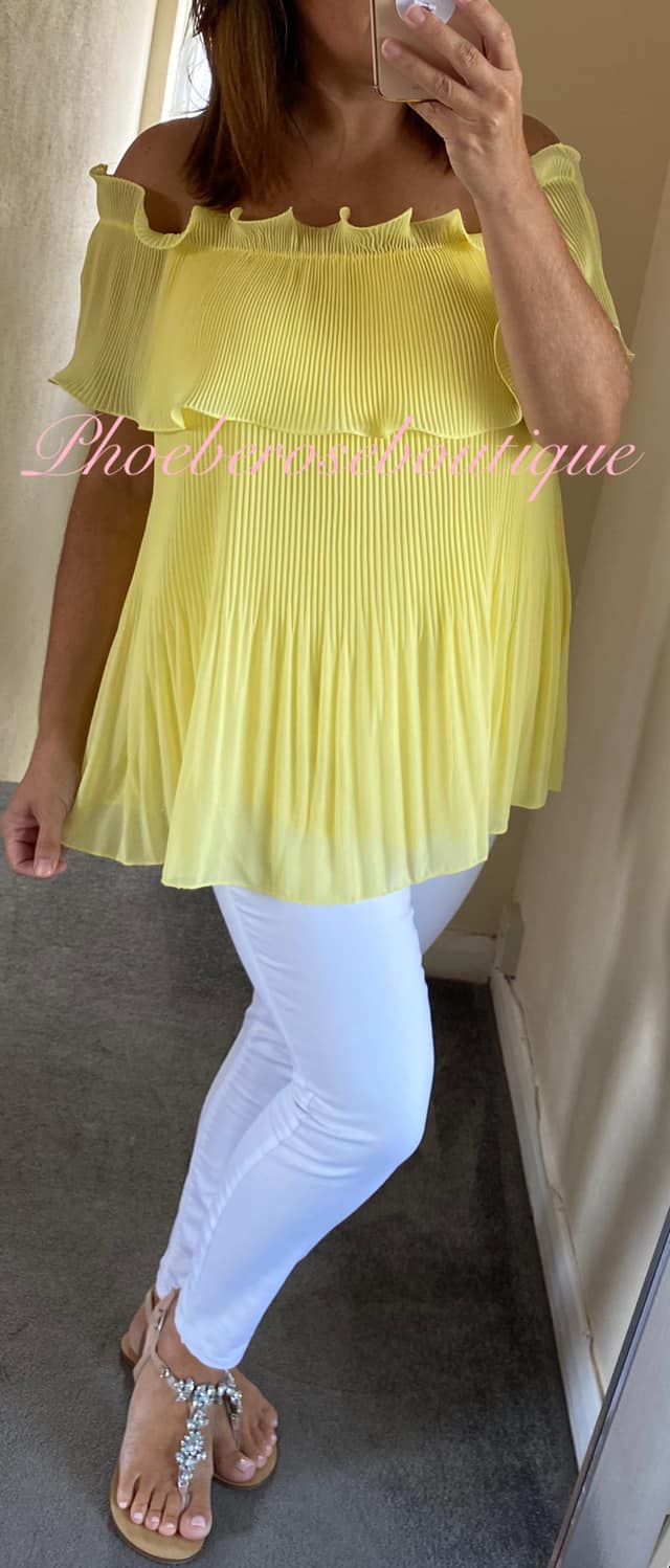 Be the first to review “Pleated Chiffon Ruffle Bandeau Top – Lemon”