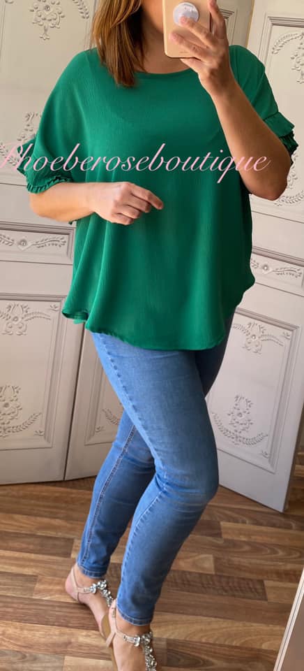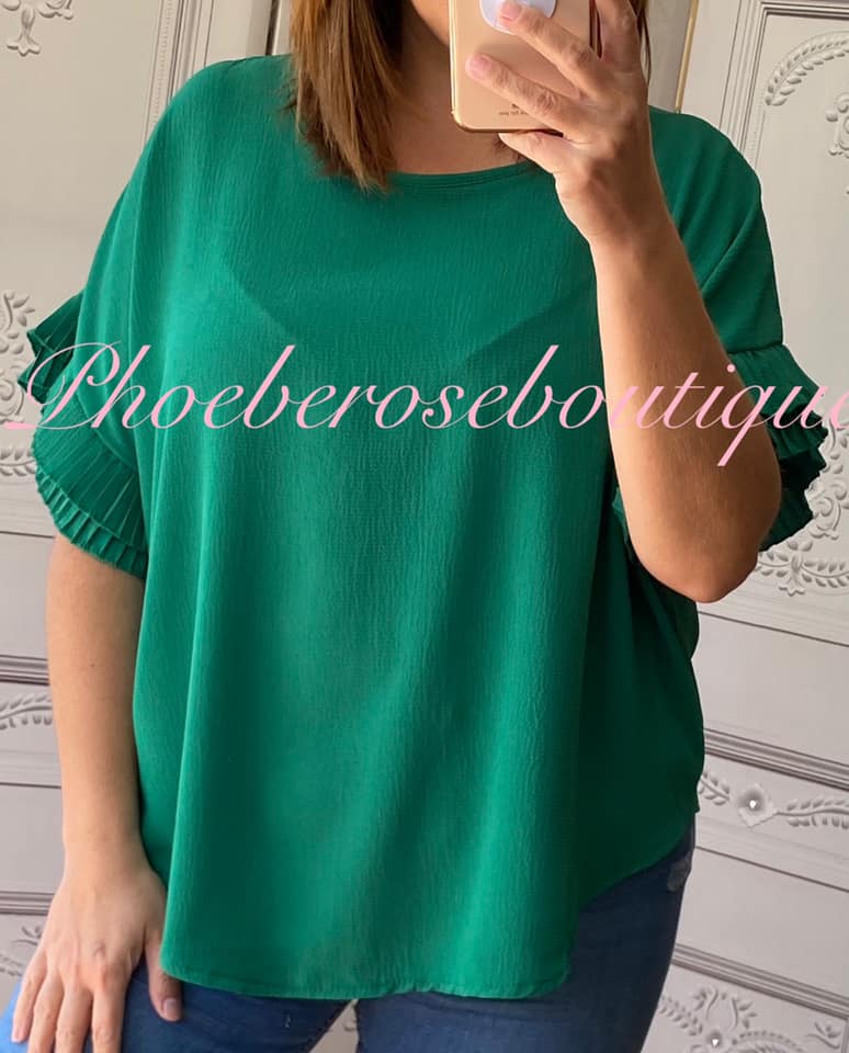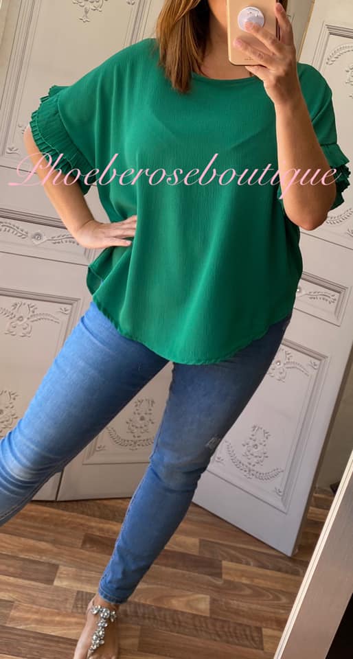 Be the first to review “Pleated Frill Crepe Feel Top – Designer Green”
